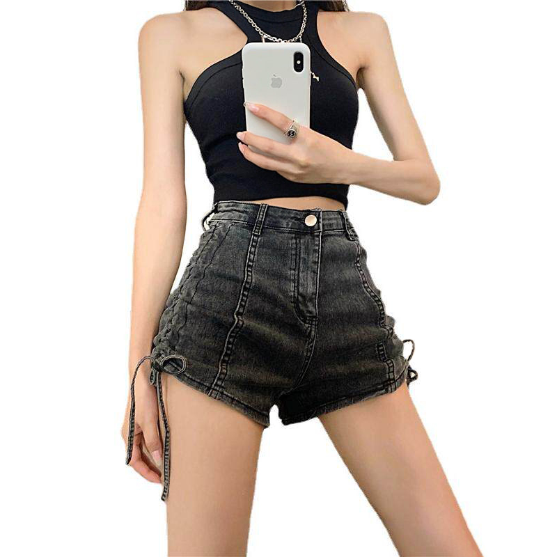 夏季新款设计感抽绳系带高腰牛仔短裤女直筒修身显瘦百搭阔腿热裤 服裝批發女裝批發服飾貨源
