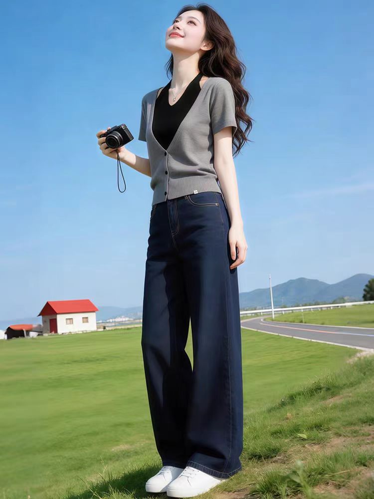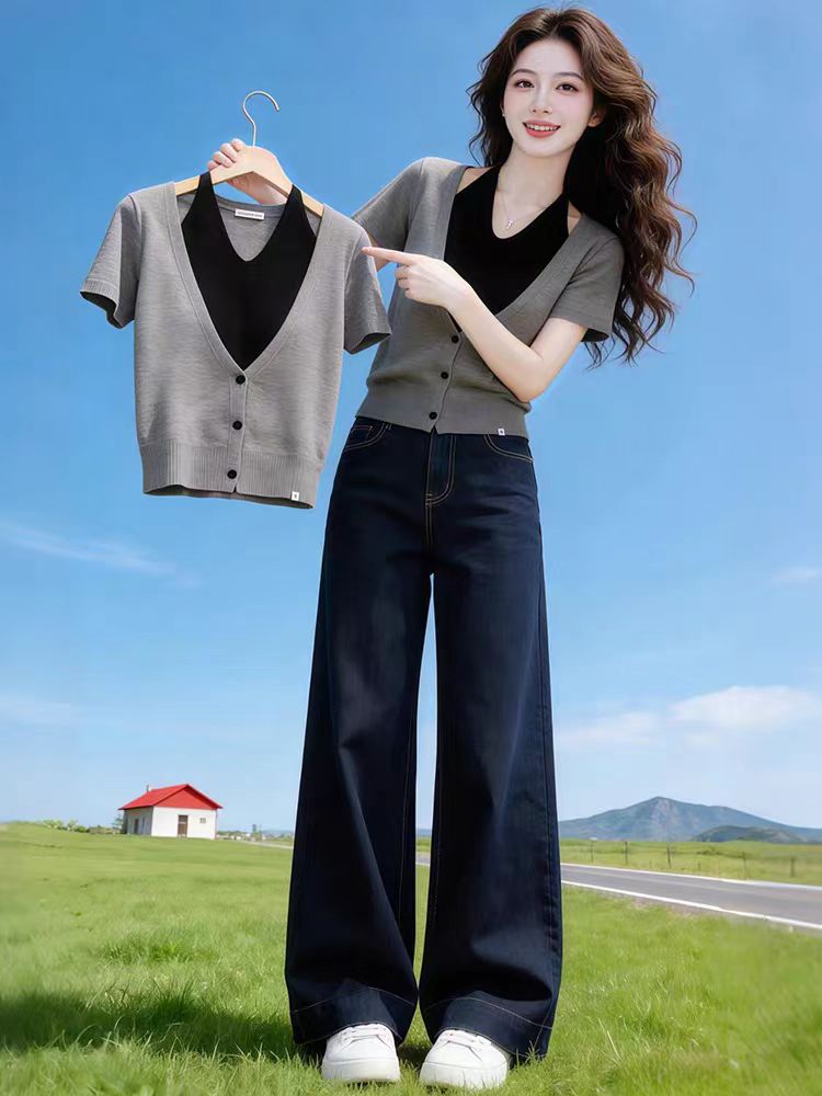 BY17201# 设计感假两件挂脖针织衫女夏季新款洋气独特漂亮巨好看上衣