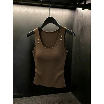 BY17207# 美式辣妹咖色针织工字背心吊带女夏宽肩带遮副乳上衣外穿chic