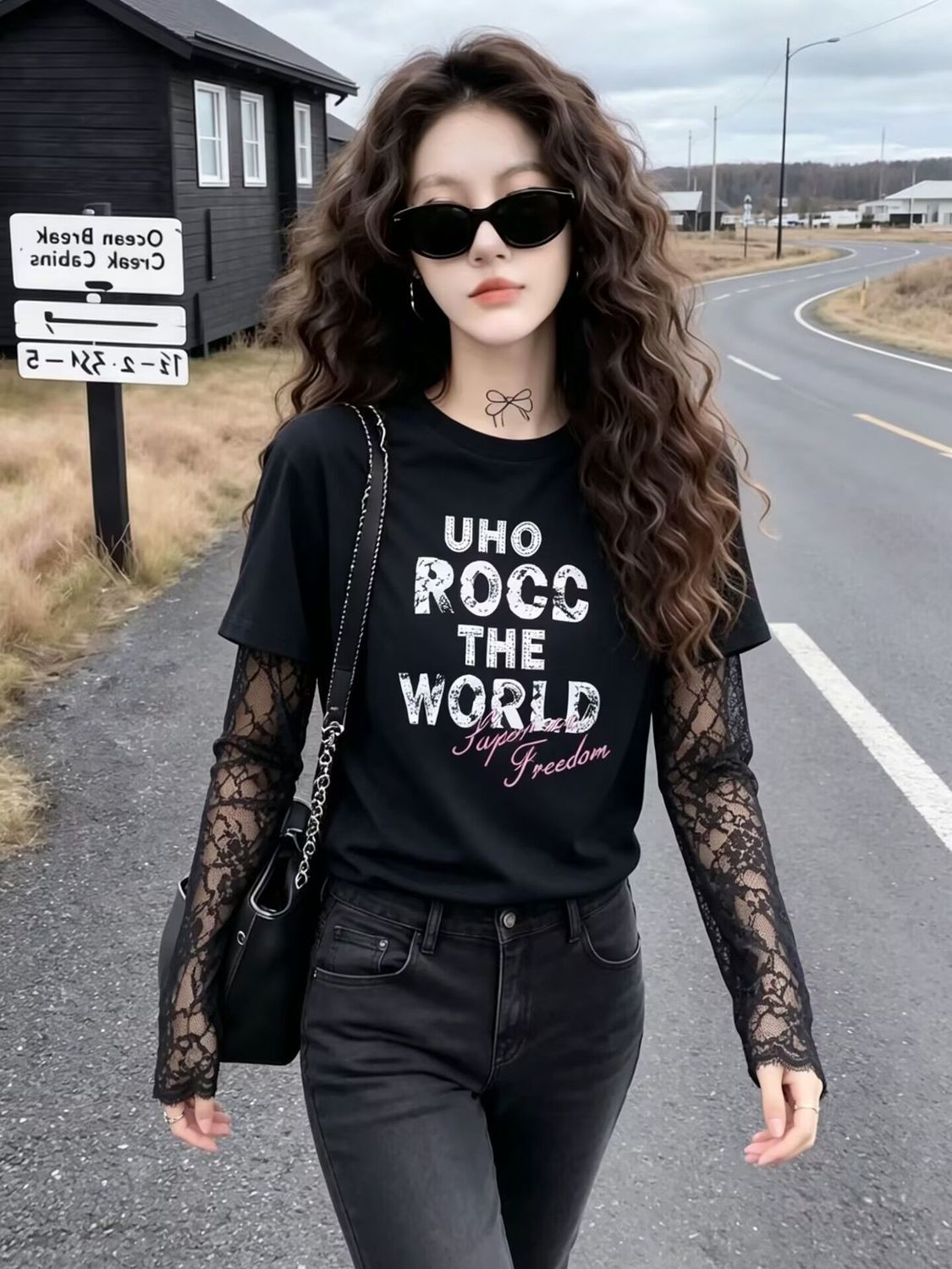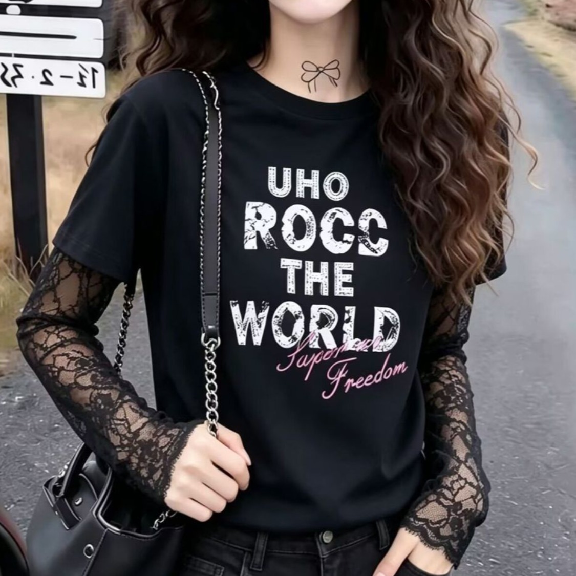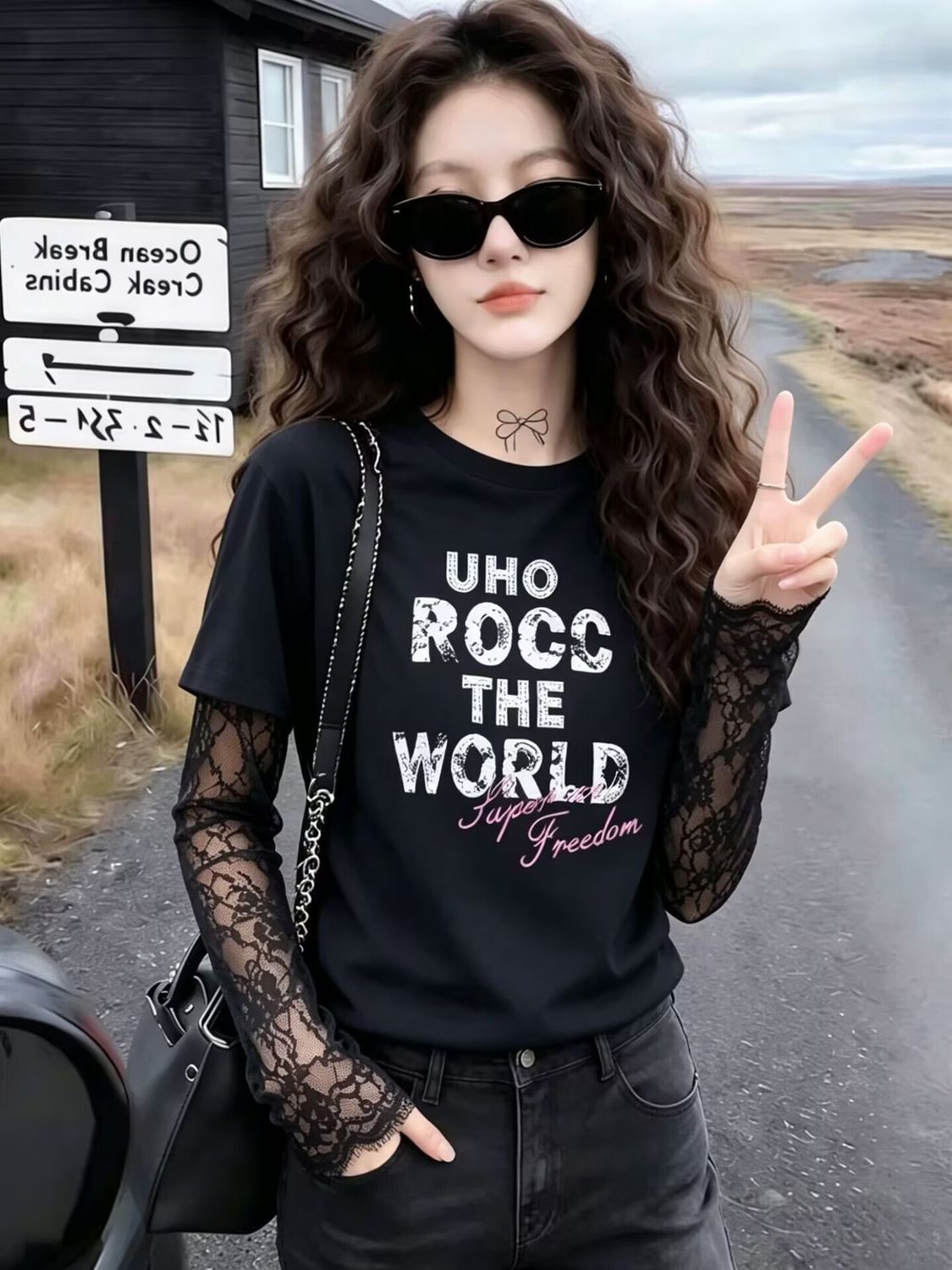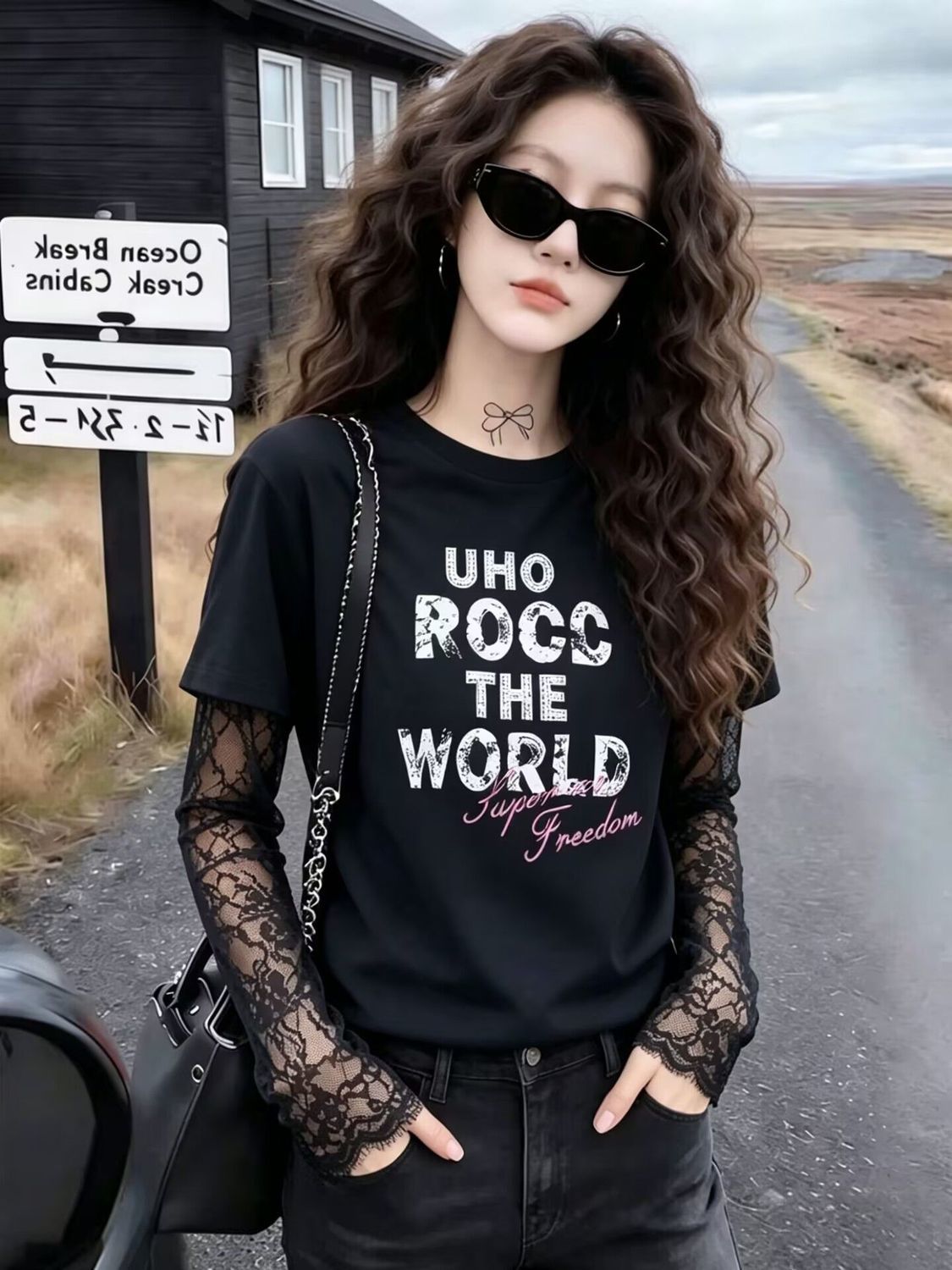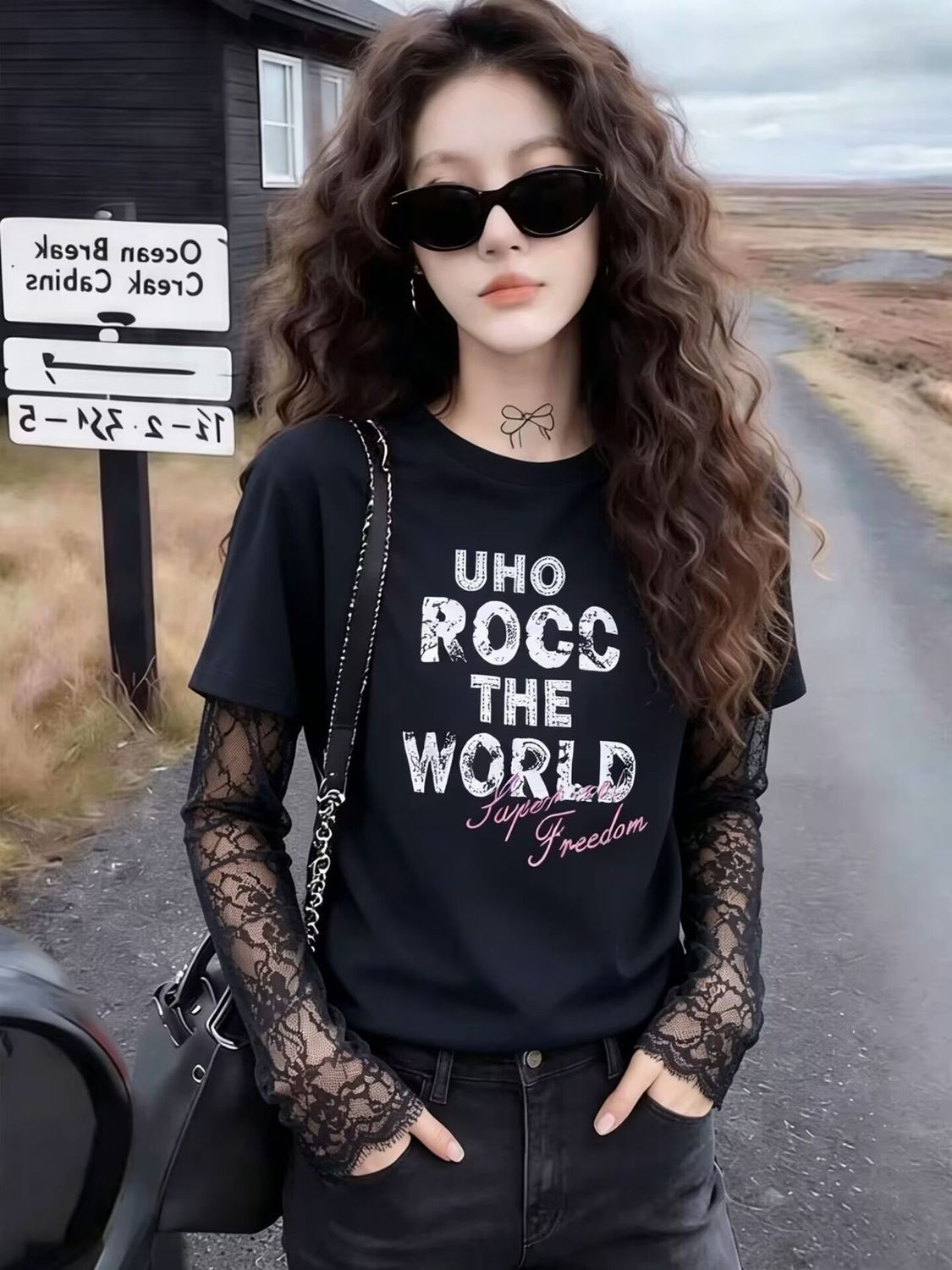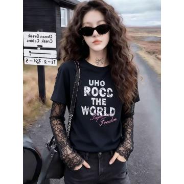 BY17235# 官拍大码女装夏季独特漂亮上衣高级小众不撞款减龄洋气黑色假两件