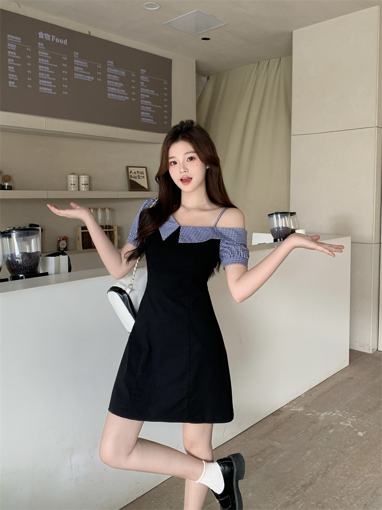 BY17337# 夏季新款设计感拼接假两件洋气连衣裙