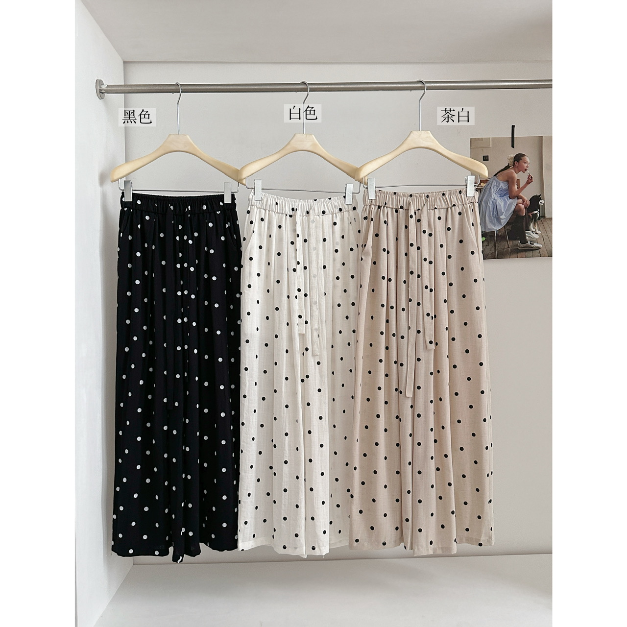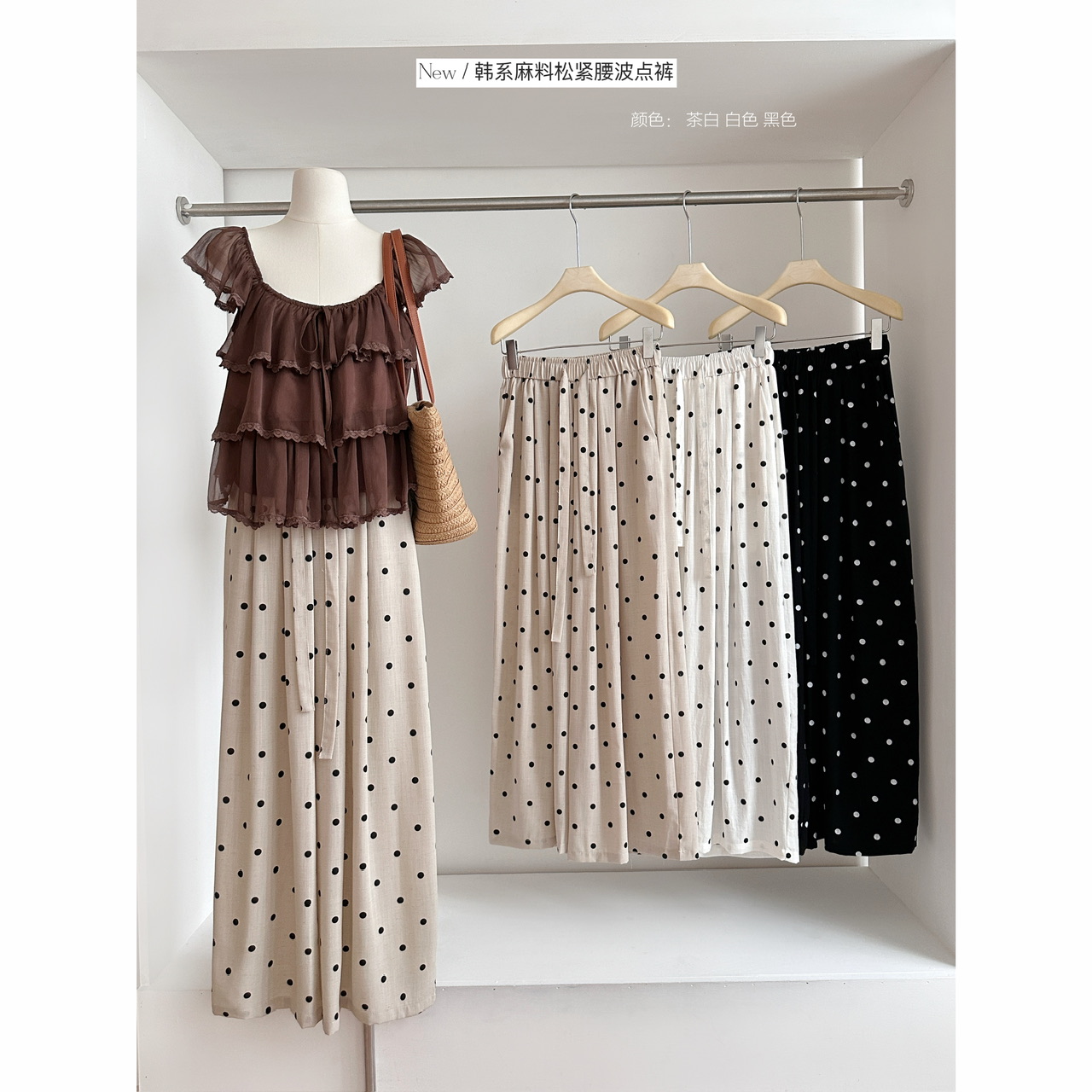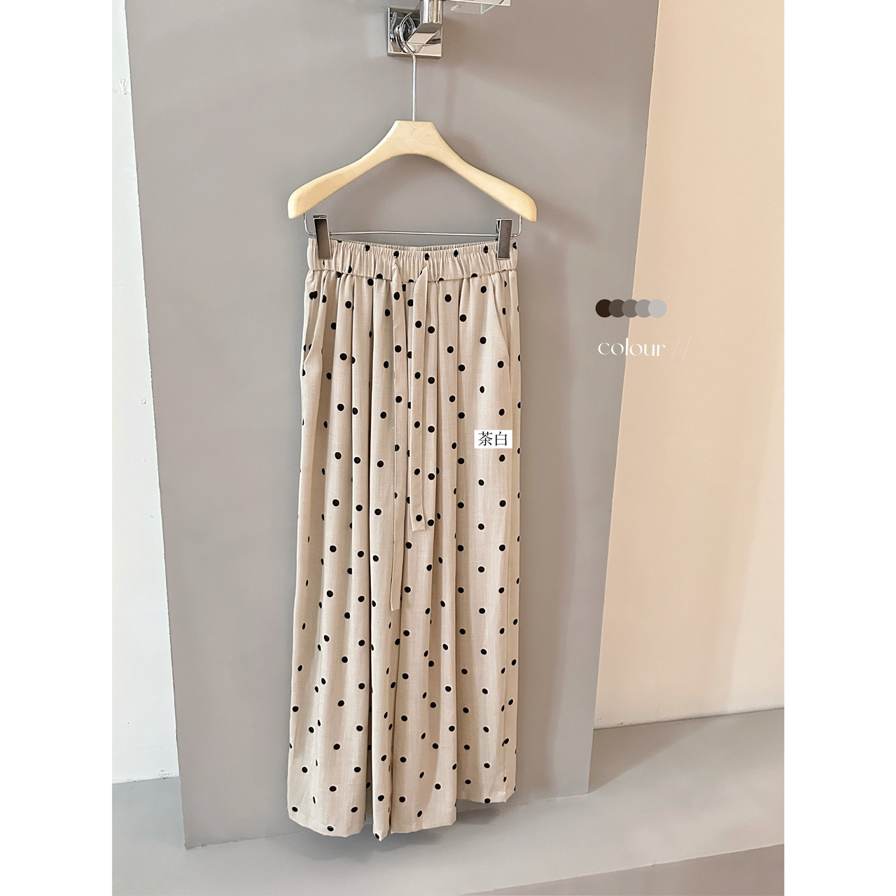 BY18663# 夏季新款松紧腰波点裤韩系麻料抽绳垂感休闲裤 服裝批發女裝批發服飾貨源