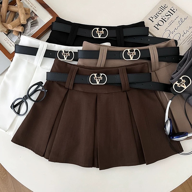 BY18976# 韩版休闲时尚百搭高腰显瘦半身裙防走光短裙a字裙百褶裙配皮带女 服裝批發女裝批發服飾貨源