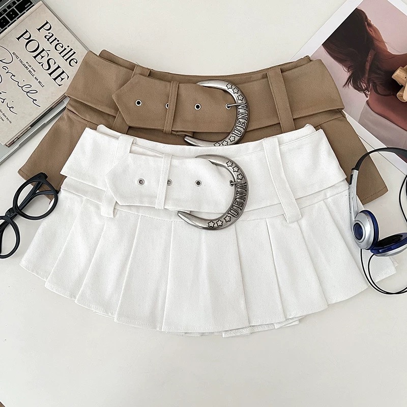 BY18979# 设计感辣妹低腰显瘦百褶裙半身裙短裙a字裙防走光裙配腰带女夏季 服裝批發女裝批發服飾貨源