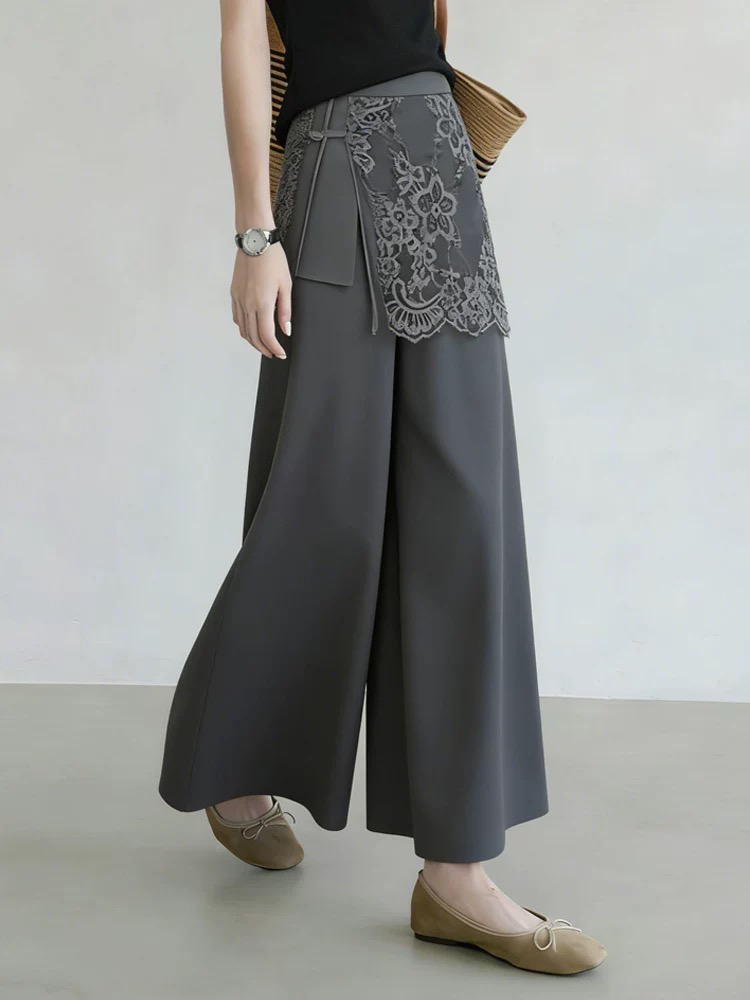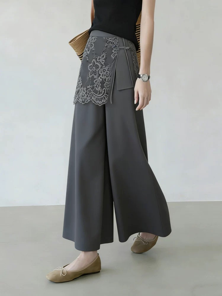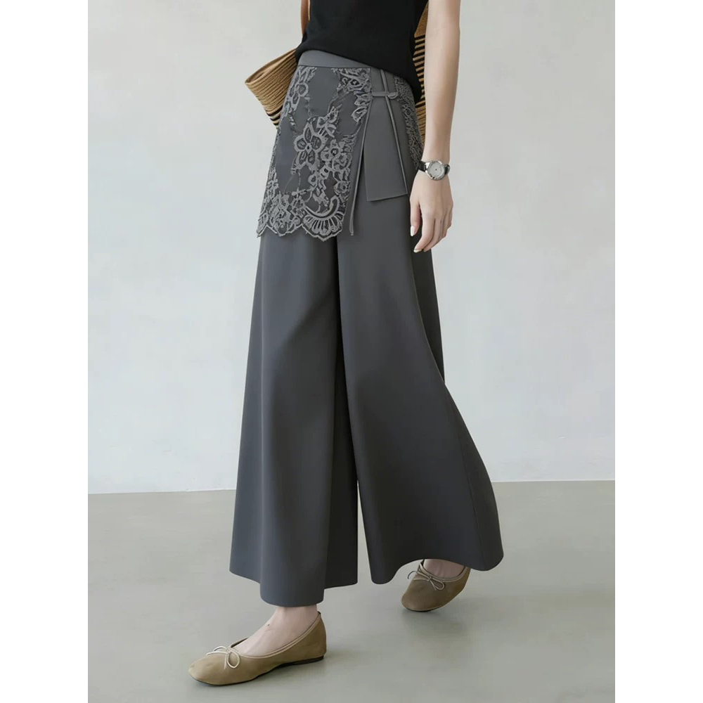 Home > 牛仔裤、长裤 > BY18986# 灰色蕾丝西装裤女夏季新款优雅风气质设计感遮胯时髦阔腿裤子 服裝批發女裝批發服飾貨源