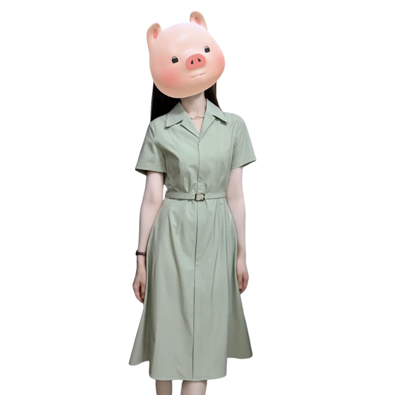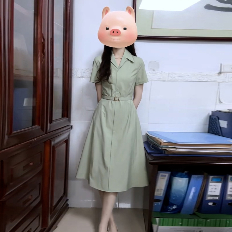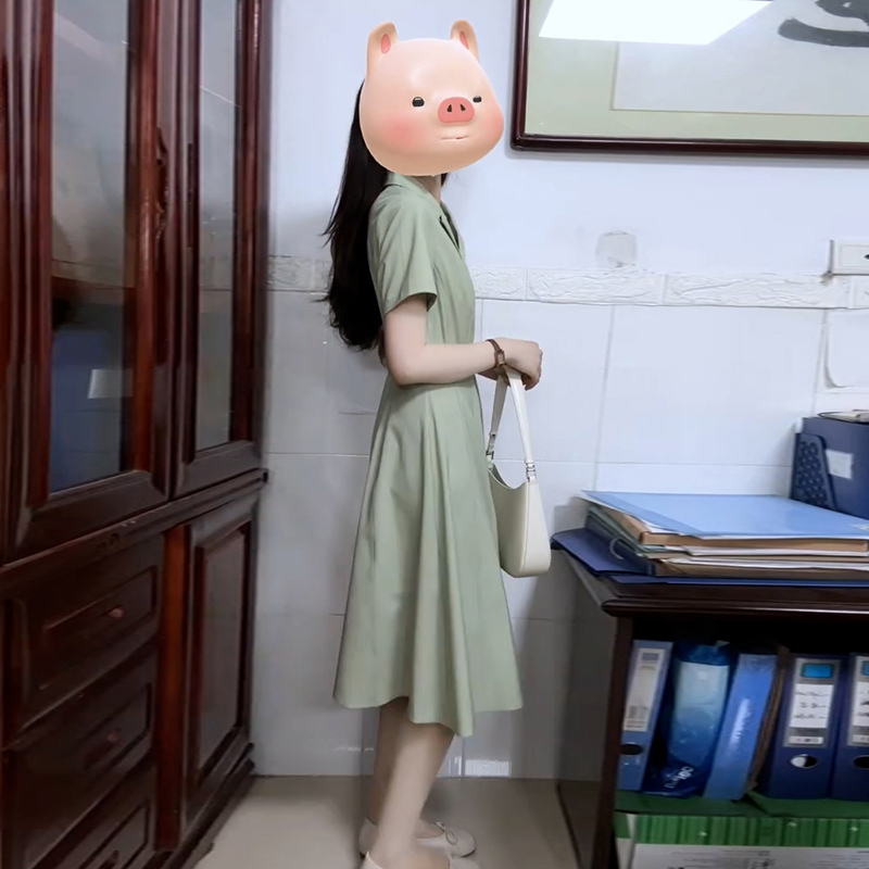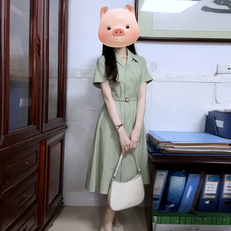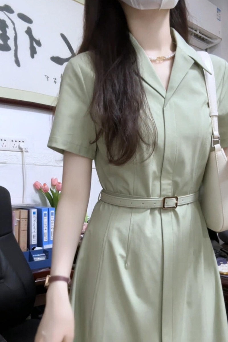 FA36526# 法式绿色衬衫连衣裙子女夏季新款爆款学院风气质通勤穿搭长裙 服裝批發女裝批發服飾貨源