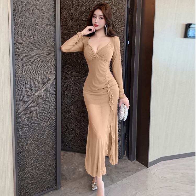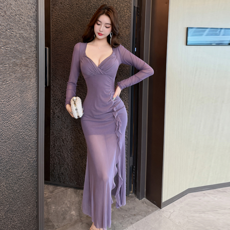 FA49314# 网纱性感长款连衣裙柔式工衣夜场养生会所美容院足浴技师工作服