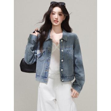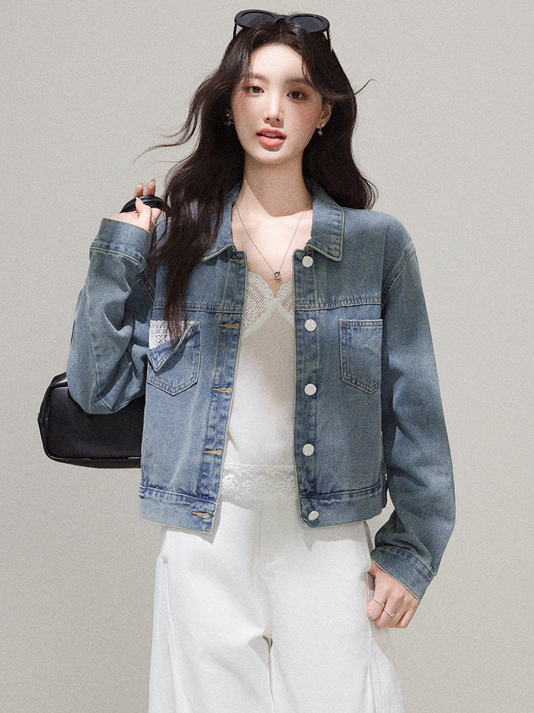 FA53995# 复古休闲牛仔外套女新款春秋季小个子短款夹克百搭上衣 服裝批發女裝批發服飾貨源