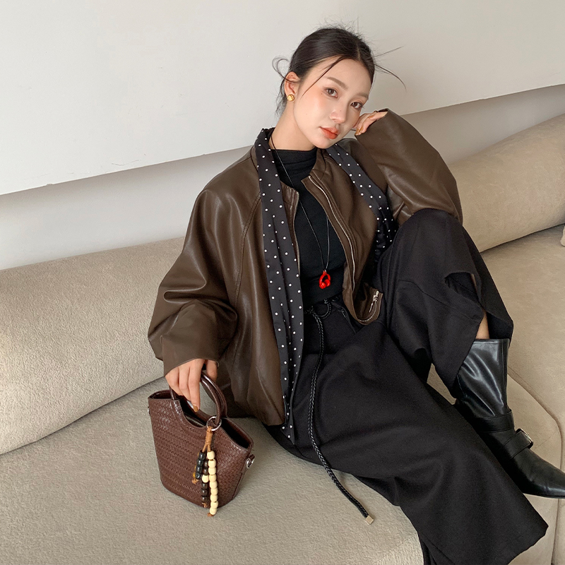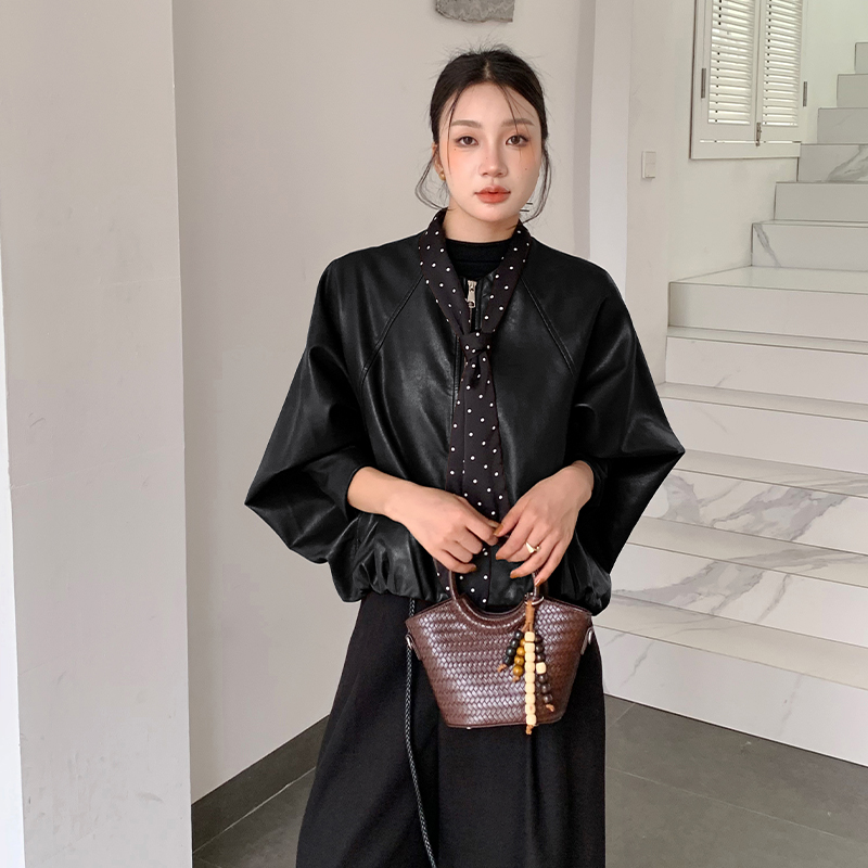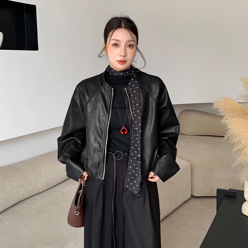 FA54181# 黑色皮衣外套女短款秋冬新夹克酷飒风小个子爆款机车气质 服裝批發女裝批發服飾貨源