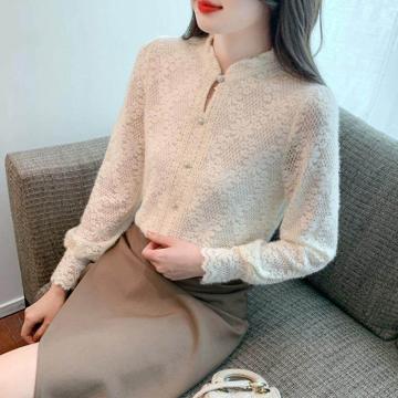 FA54272# 新款早春蕾丝女雪纺蕾丝修身显瘦时尚洋气长袖时尚上衣 服裝批發女裝批發服飾貨源