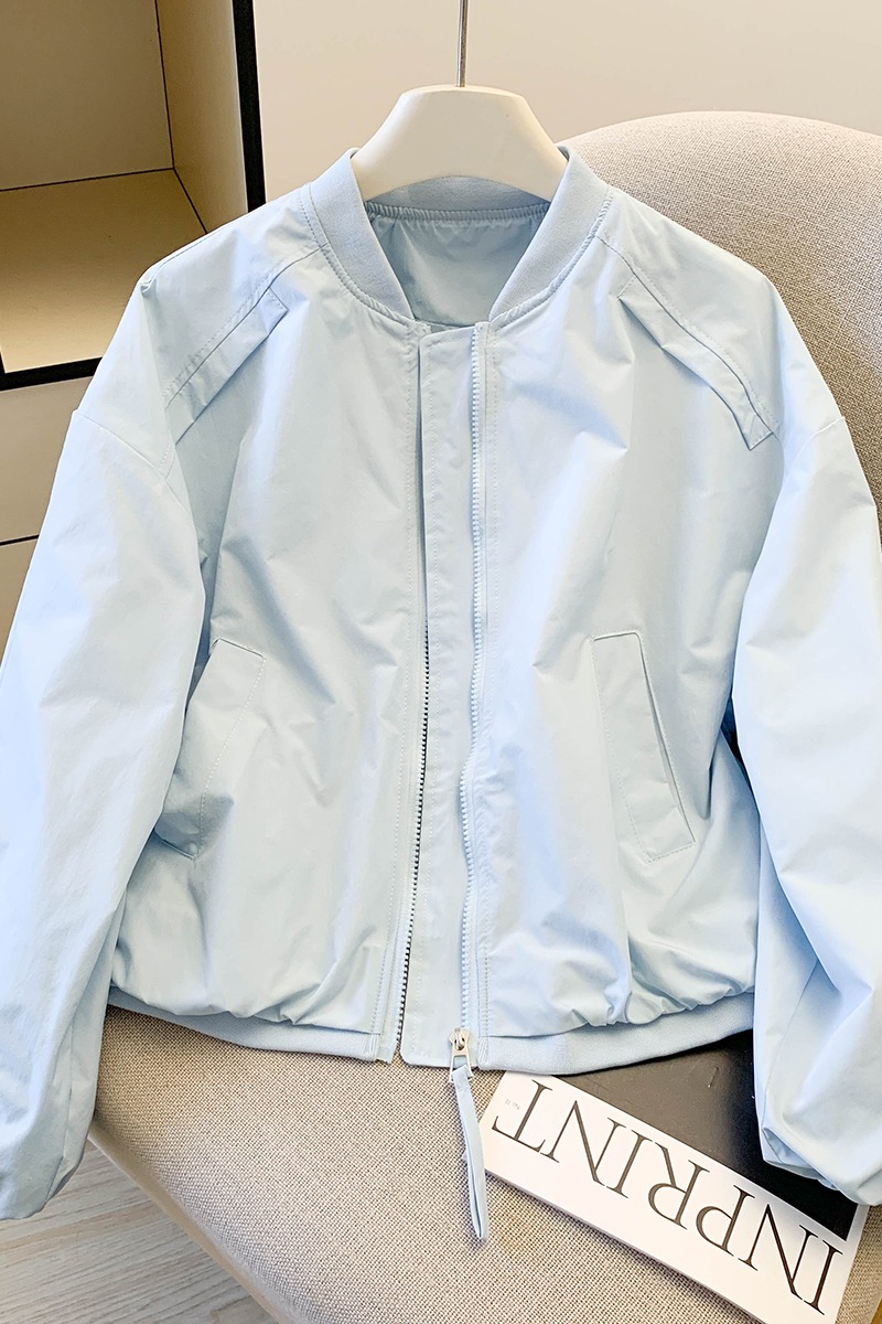 FA54399# 韩系棒球服外套女新款秋季立领短款夹克蓝色小香风休闲小外套 服裝批發女裝批發服飾貨源
