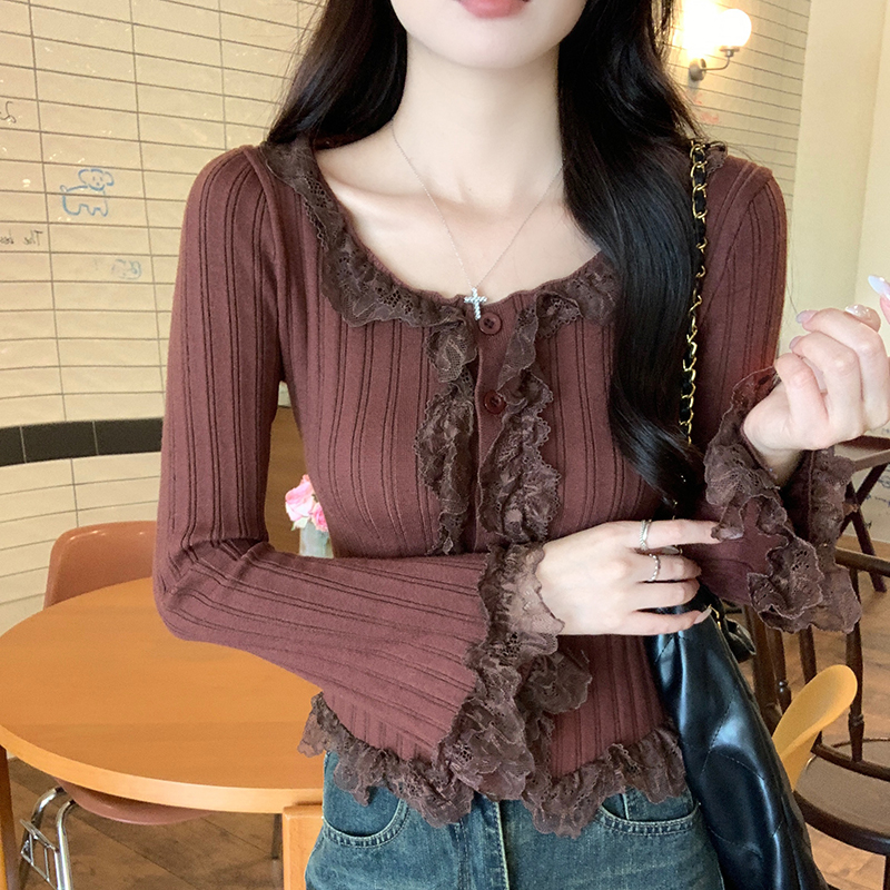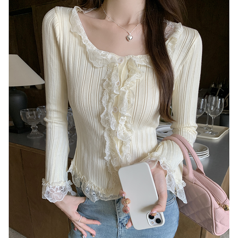 FA54699# 新款秋冬季韩版修身打底半高领蕾丝拼接针织打底上衣 服裝批發女裝批發服飾貨源
