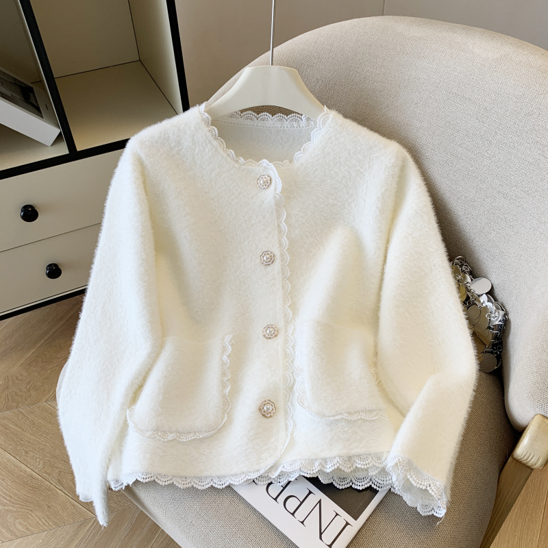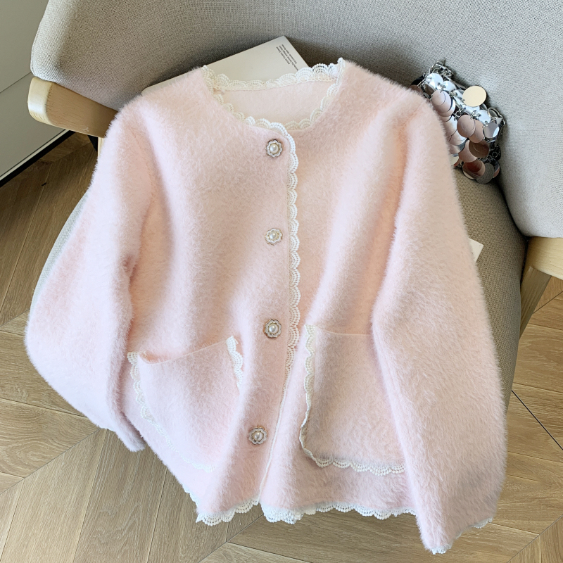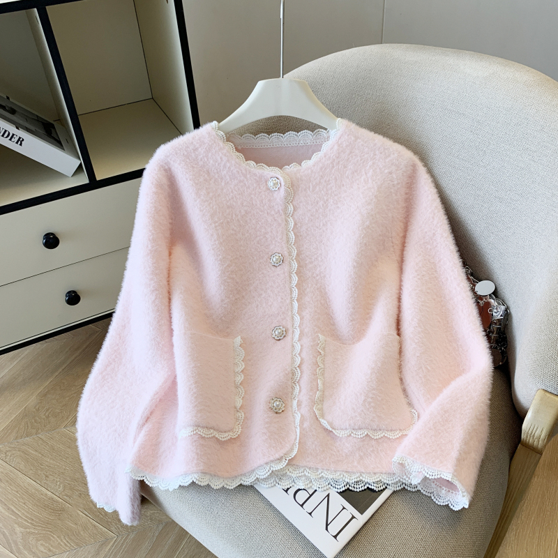 FA56390# 春季新款小香风厚外套女纯色小个子仿水貂绒针织开衫上衣 服裝批發女裝批發服飾貨源