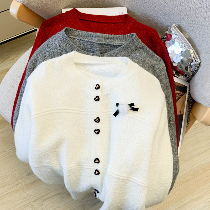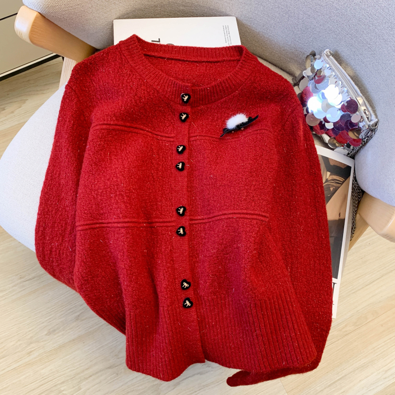 FA56393# 春季新款法式氛围穿搭红色小香风毛衣女软糯开衫外套高级感 服裝批發女裝批發服飾貨源