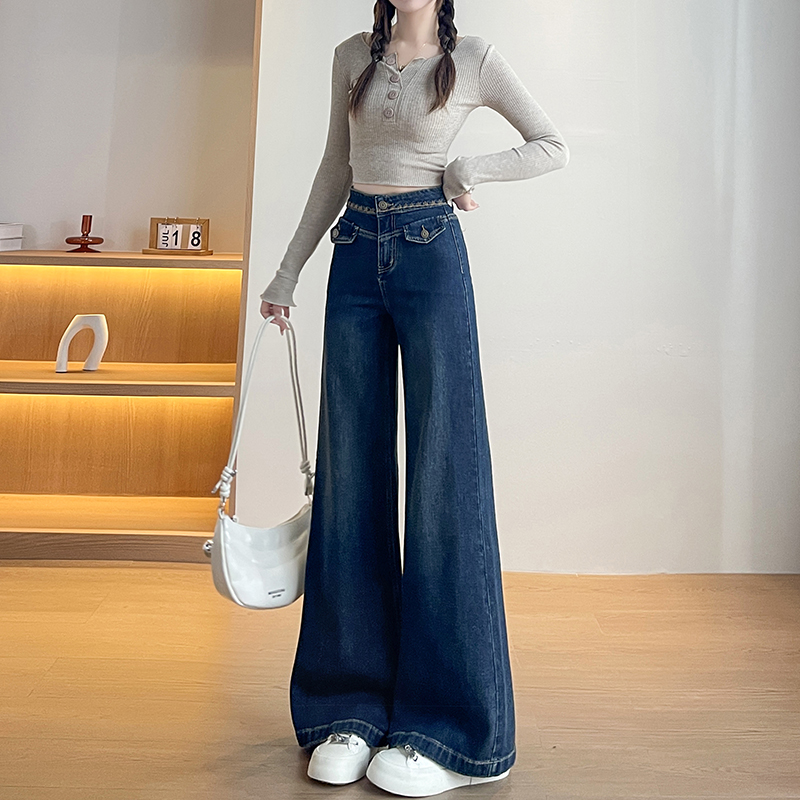 复古蓝长裤