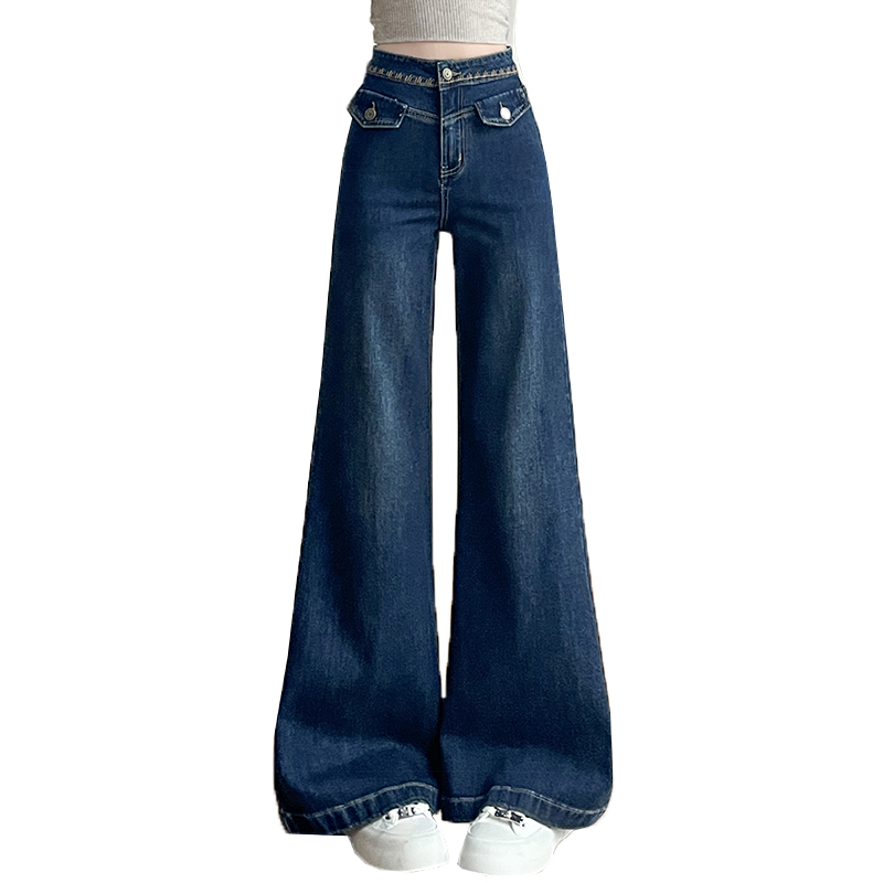 FA56414# 春季新款小个子重工刺绣弹力牛仔裤女喇叭裤高腰宽松型 服裝批發女裝批發服飾貨源