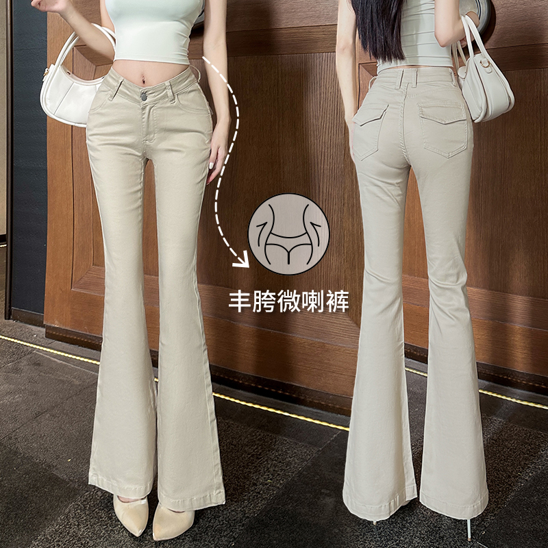 FA56527# 韩版奶茶色固定式丰胯V腰设计5色微喇裤梨形必备腰臀比神裤 服裝批發女裝批發服飾貨源