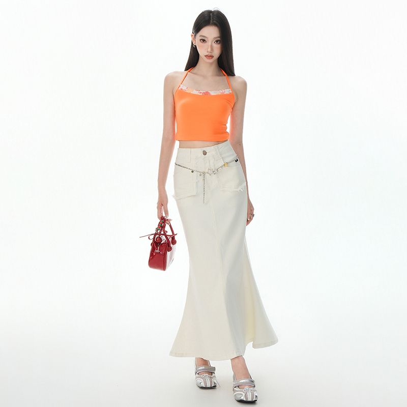 高腰弹力牛仔半身裙夏季新款设计感宽松显瘦鱼尾裙中长裙子 服裝批發女裝批發服飾貨源