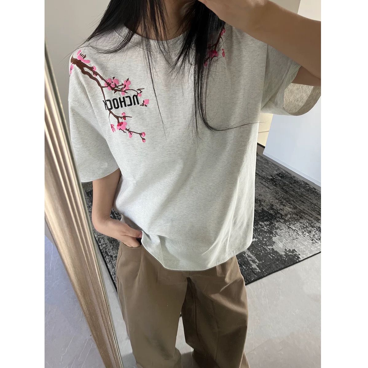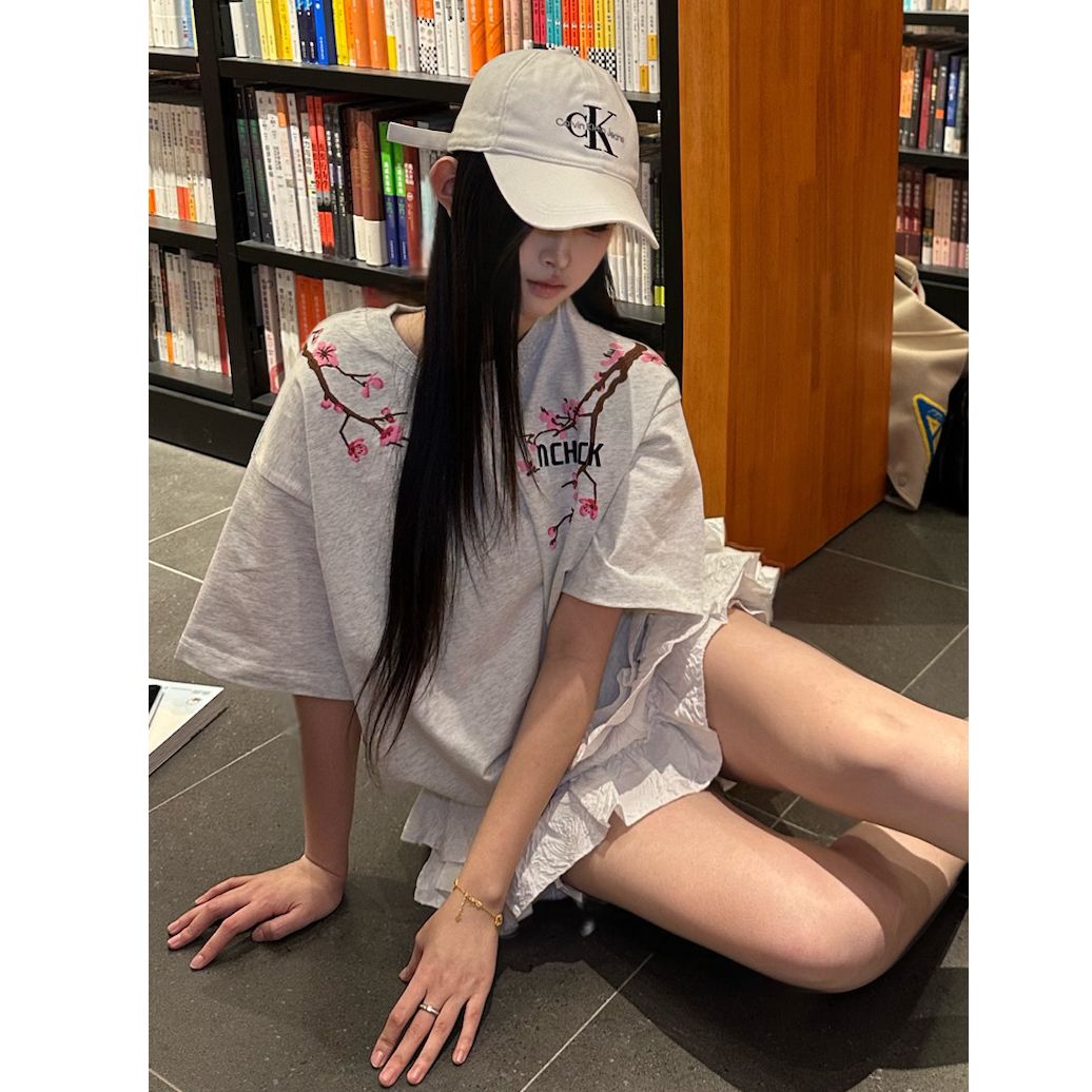 BY10916# 纯棉原版刺绣品质升级美式设计白灰色上衣字母花朵短袖T恤 服裝批發女裝批發服飾貨源