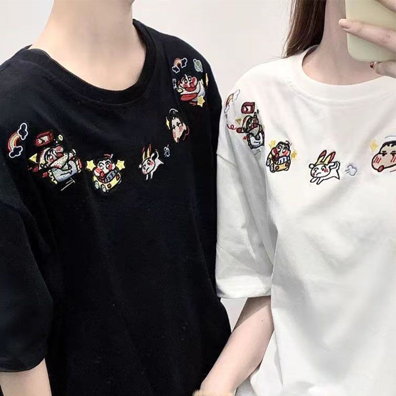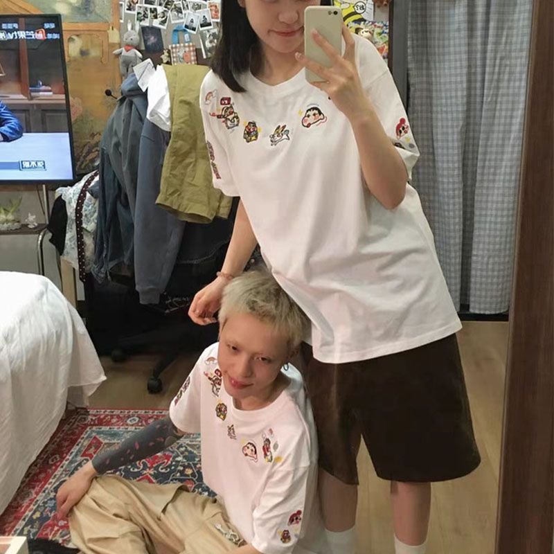 BY10918# 纯棉原版刺绣品质升级美式设计百搭圆领情侣夏季新款休闲风 服裝批發女裝批發服飾貨源