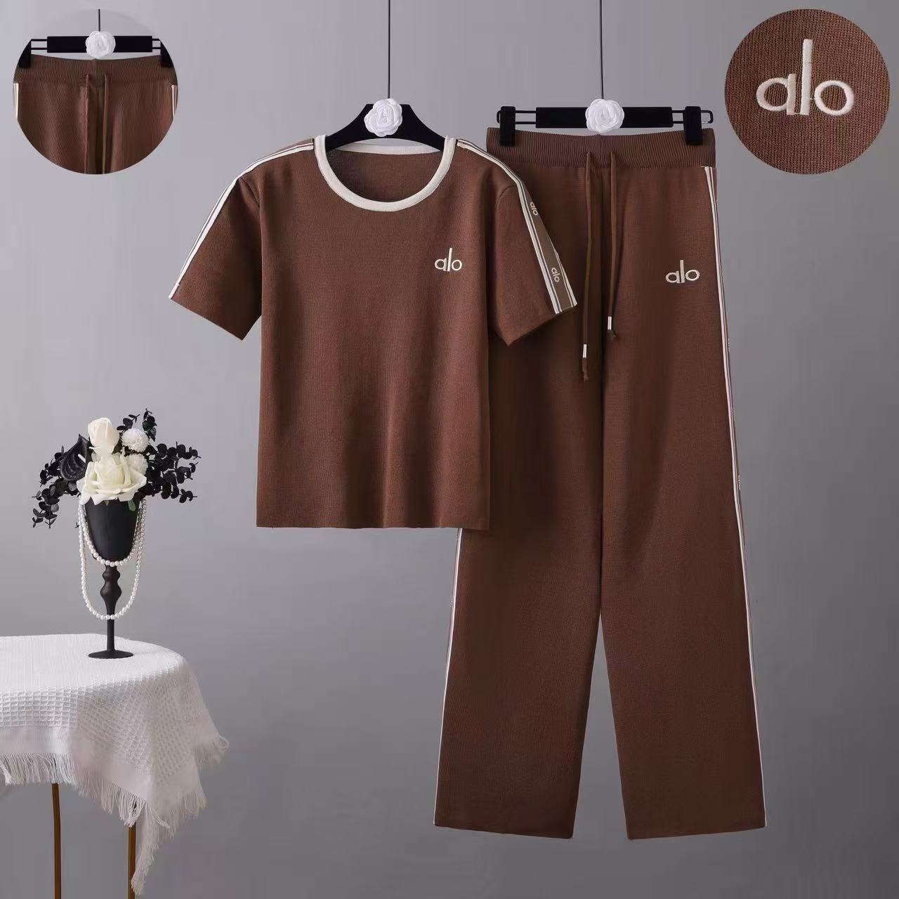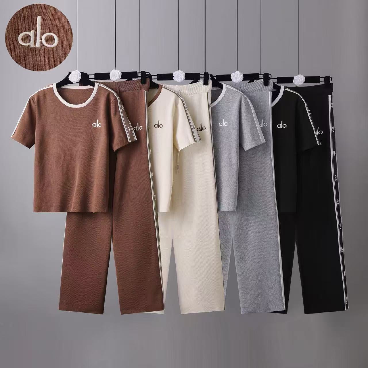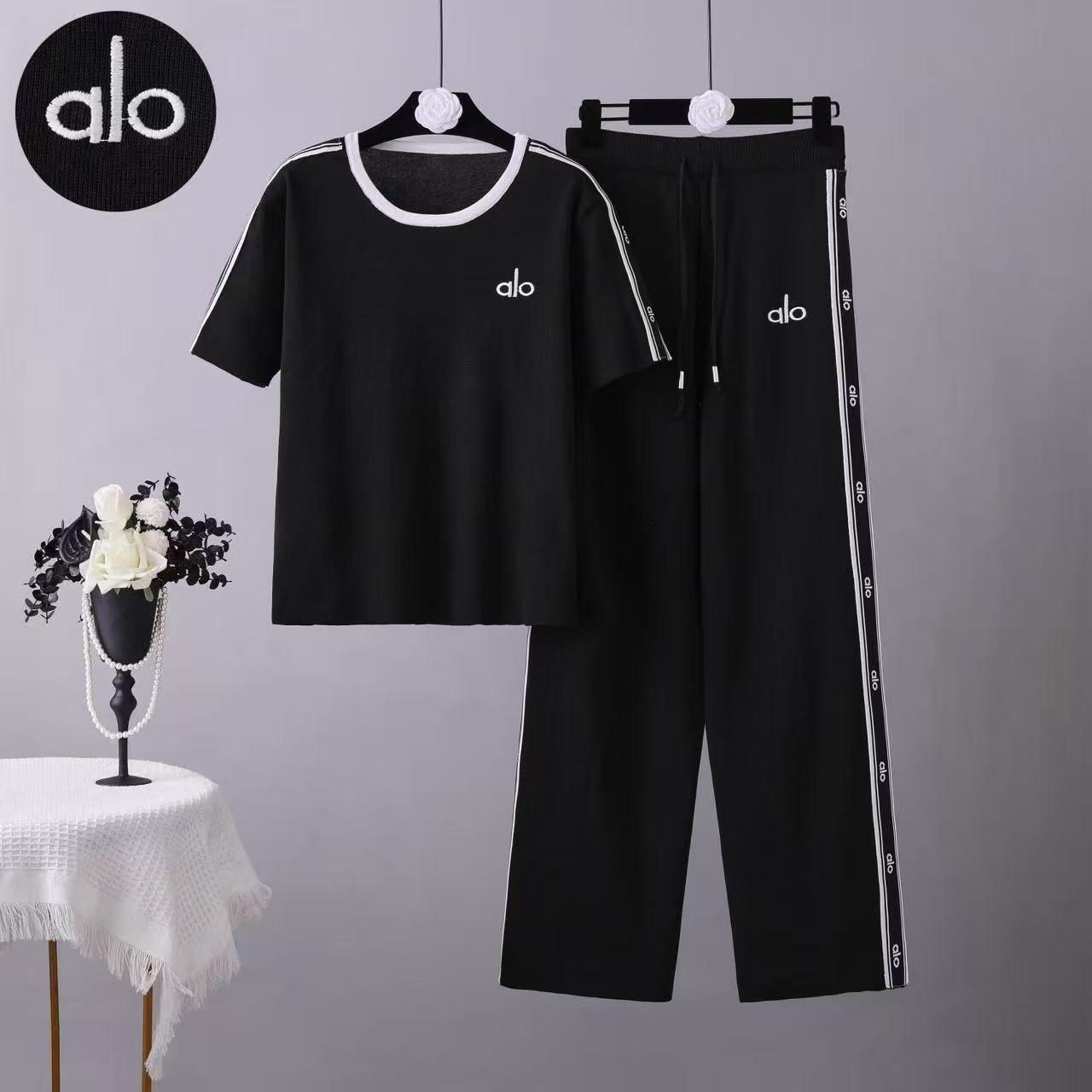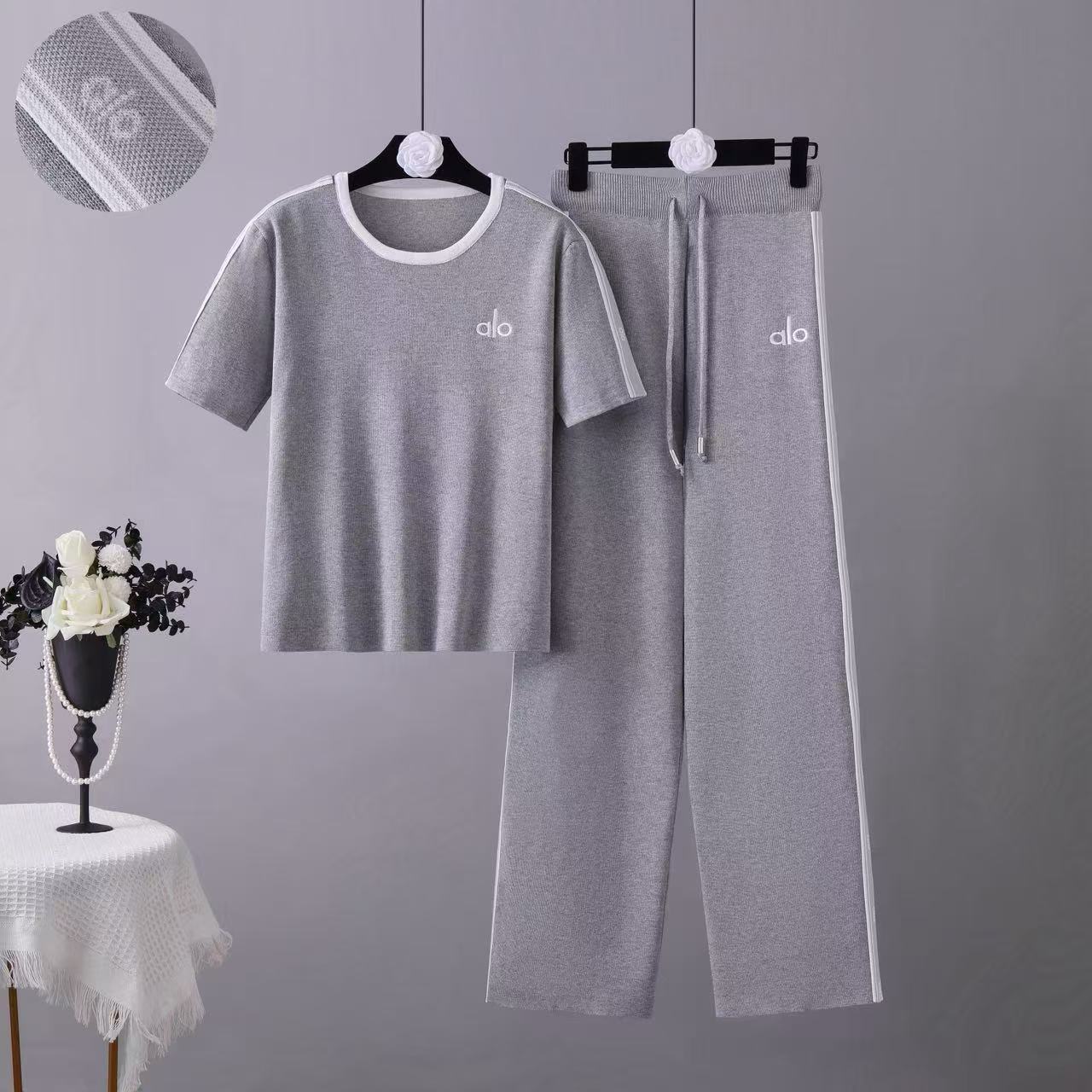 BY10939# 新款跨境欧美休闲套装短袖圆领针织上衣阔腿裤时尚两件套女 服裝批發女裝批發服飾貨源