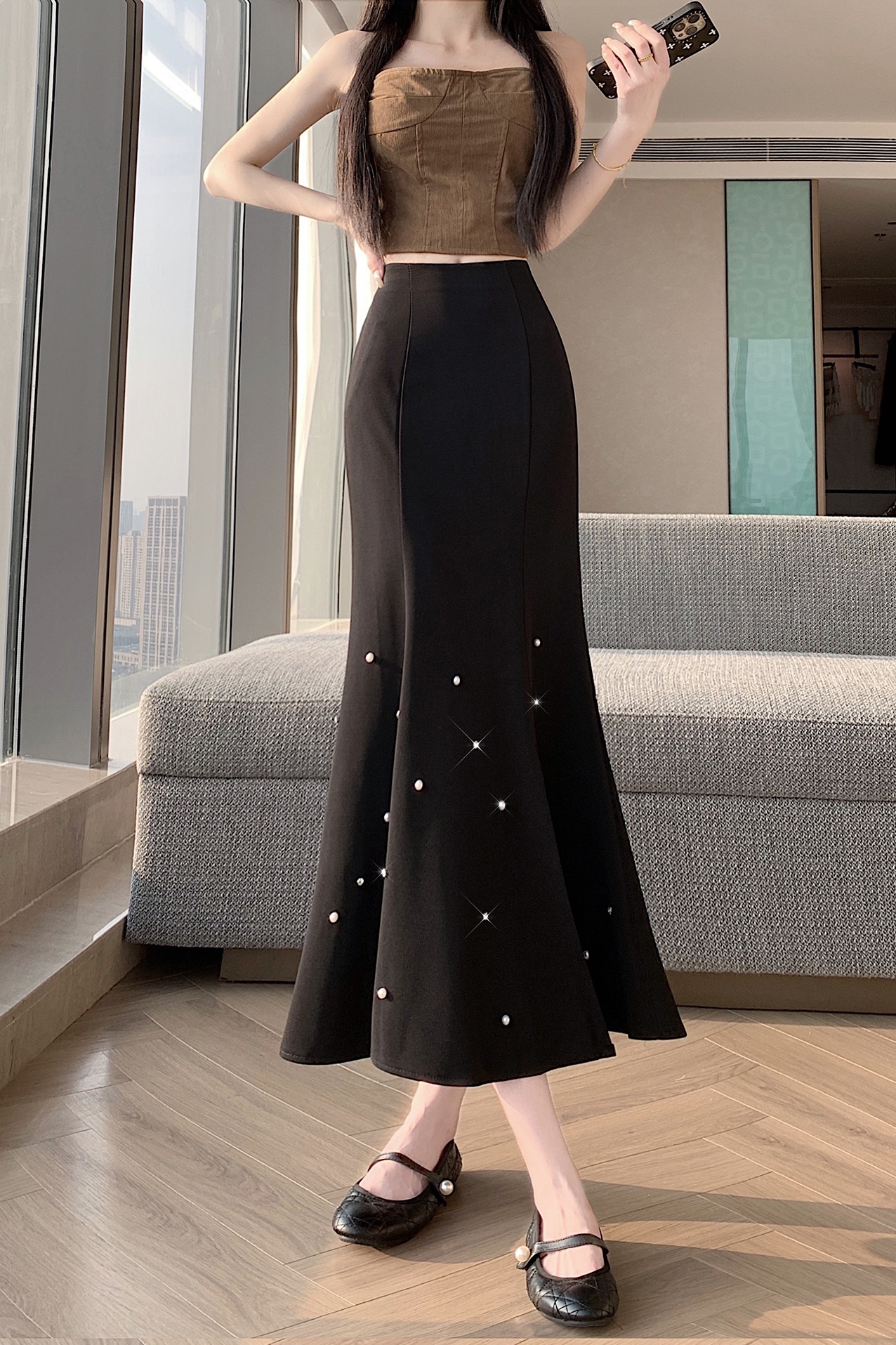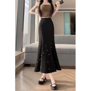 BY12329# 复古半身裙女高腰显瘦中长款包臀鱼尾裙钉珠荷叶裙开叉一步裙 服裝批發女裝批發服飾貨源