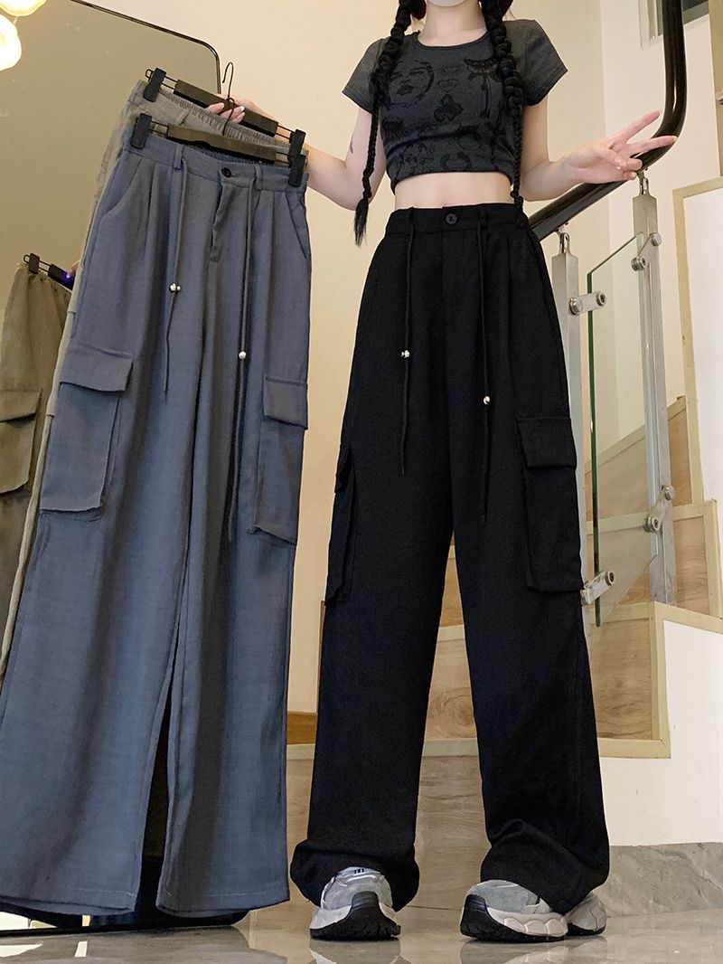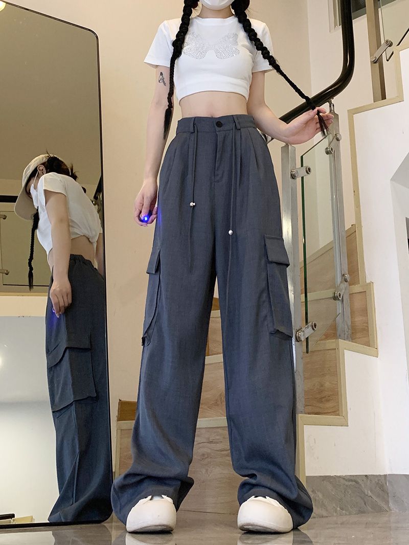 BY12370# 包边美式工装裤大码女装休闲裤直筒垂感宽松阔腿裤 服裝批發女裝批發服飾貨源