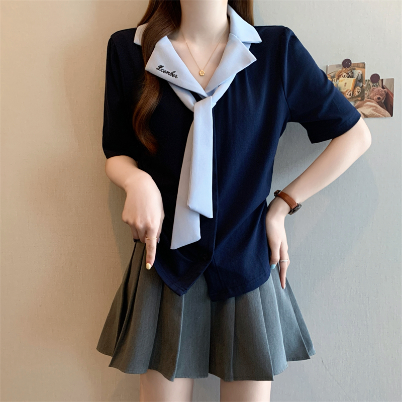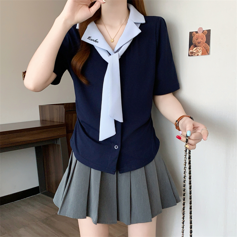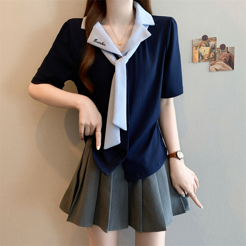BY12576# 夏季新款韩版大码女装设计感学院女装短袖上衣T恤小衫 服裝批發女裝批發服飾貨源