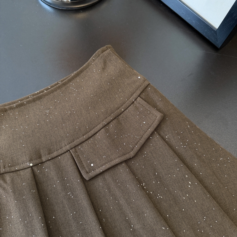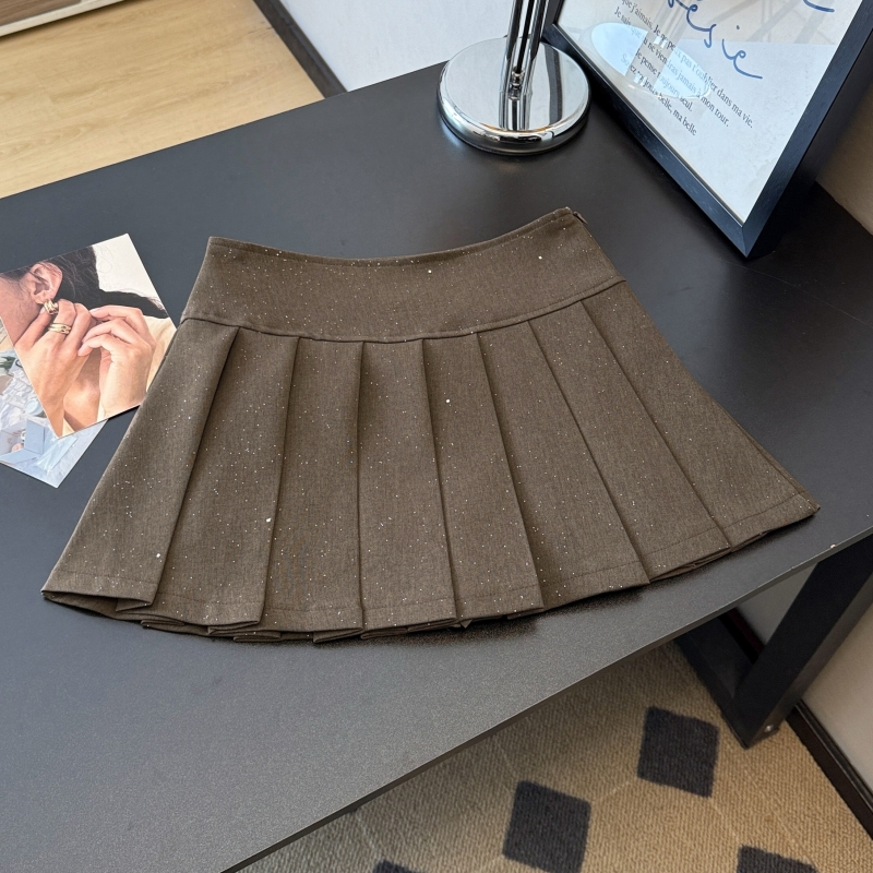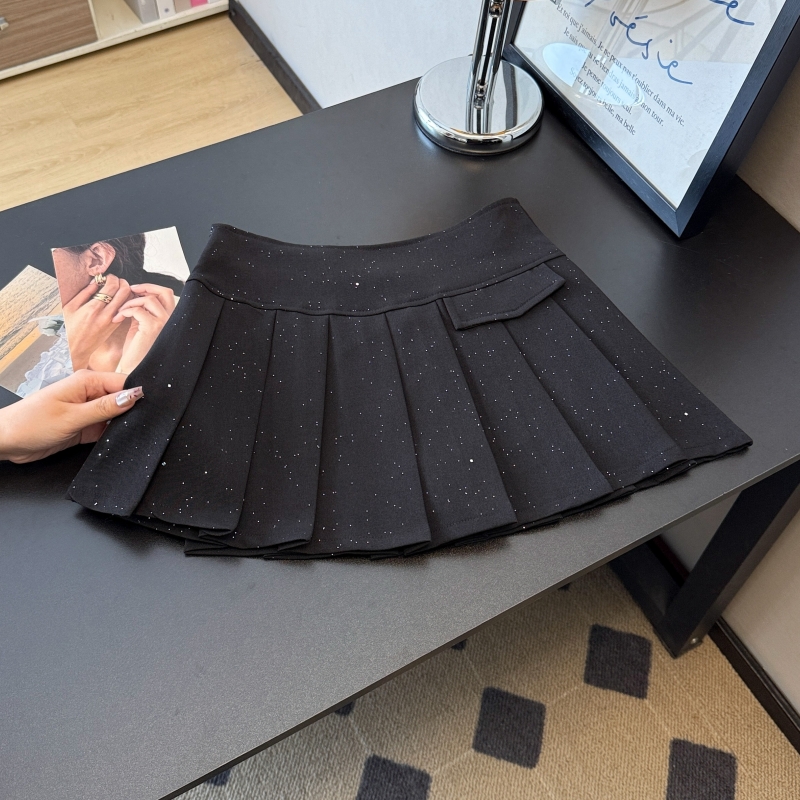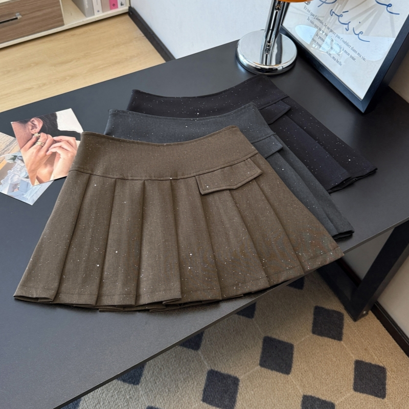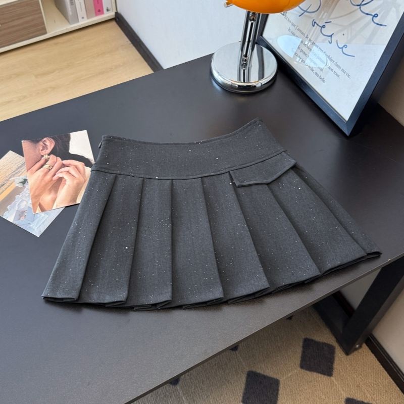BY12583# 学院风灰色百褶半身裙女春新款亮片气质减龄显瘦A字短裙 服裝批發女裝批發服飾貨源