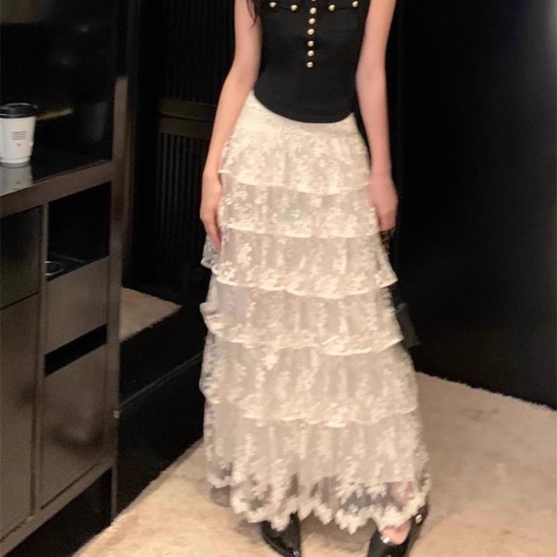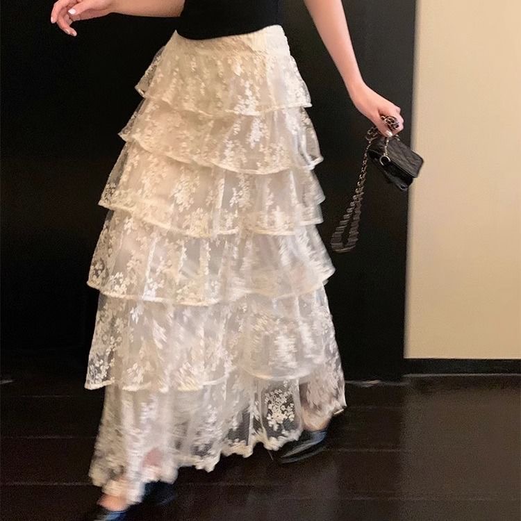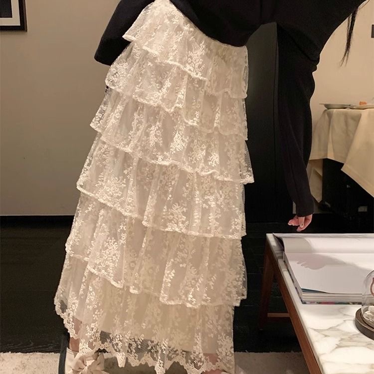 BY12585# 春季超仙气温柔甜美高腰蕾丝半身裙女新款显瘦A字蓬蓬蛋糕裙 服裝批發女裝批發服飾貨源