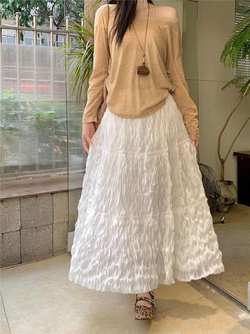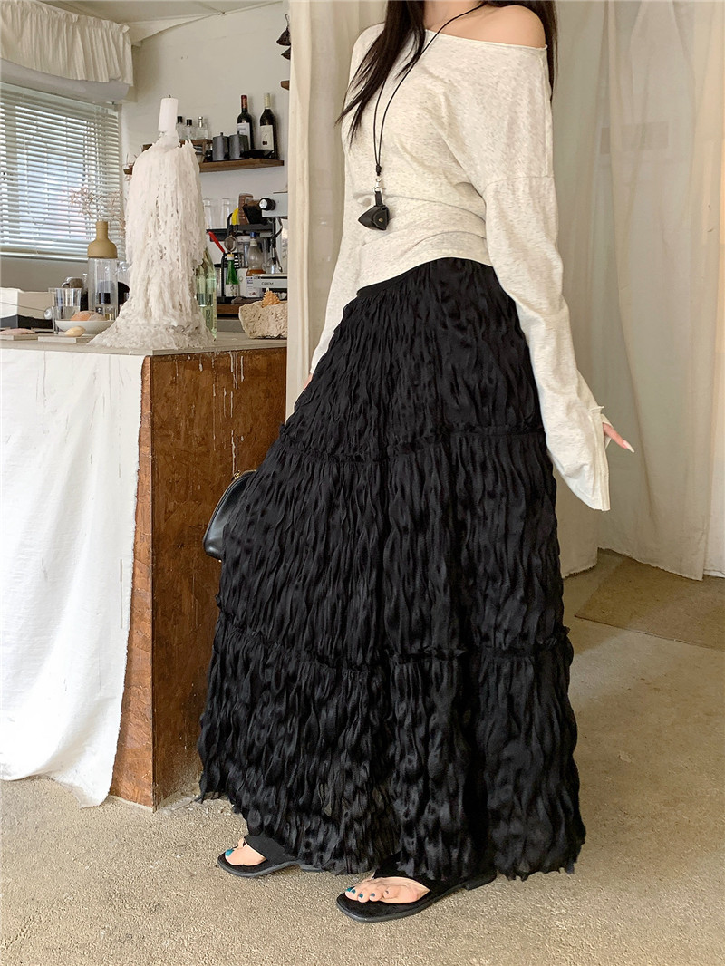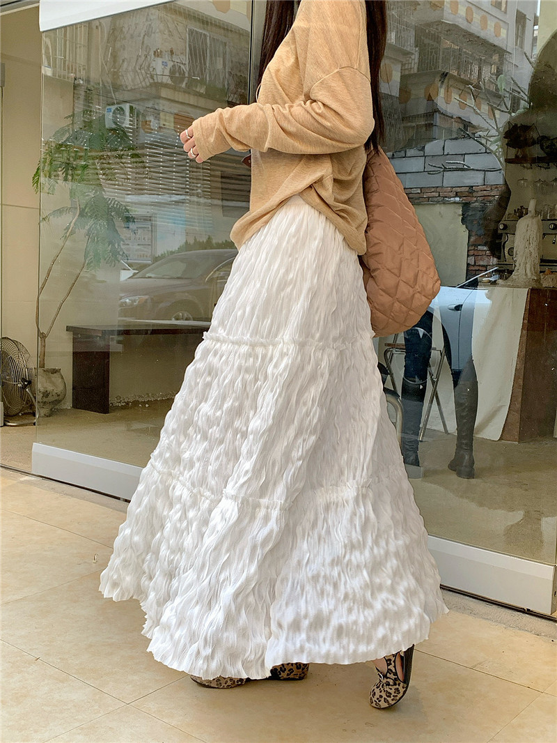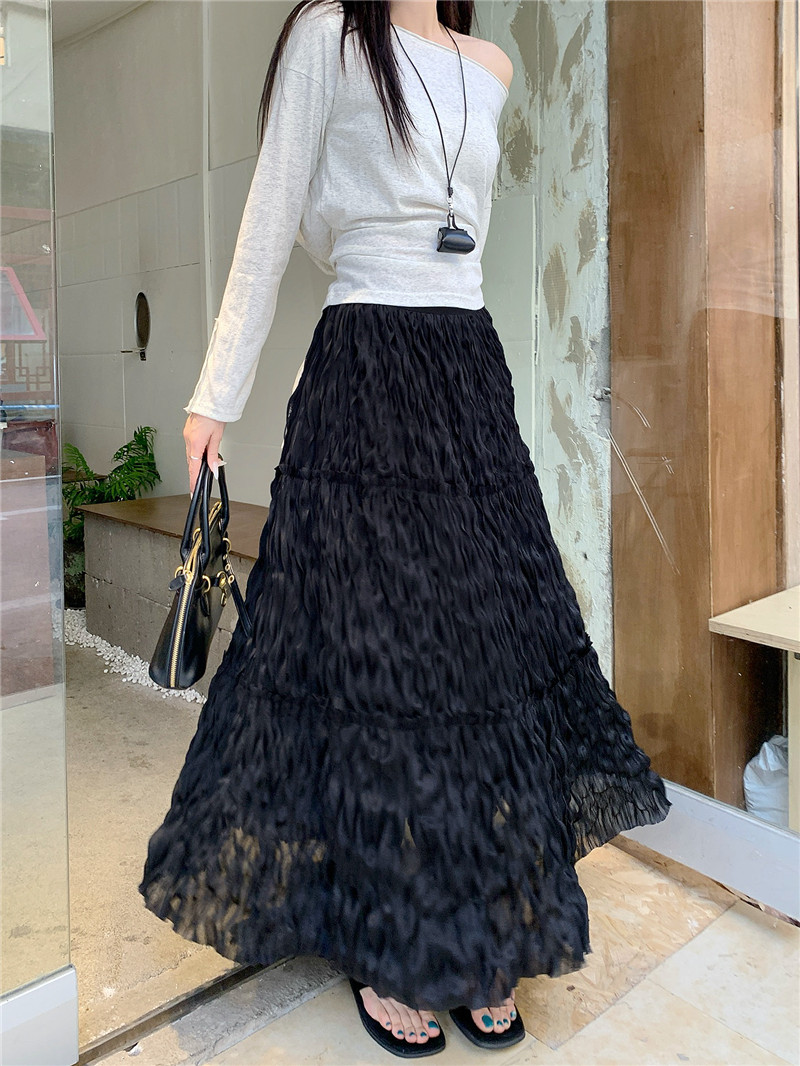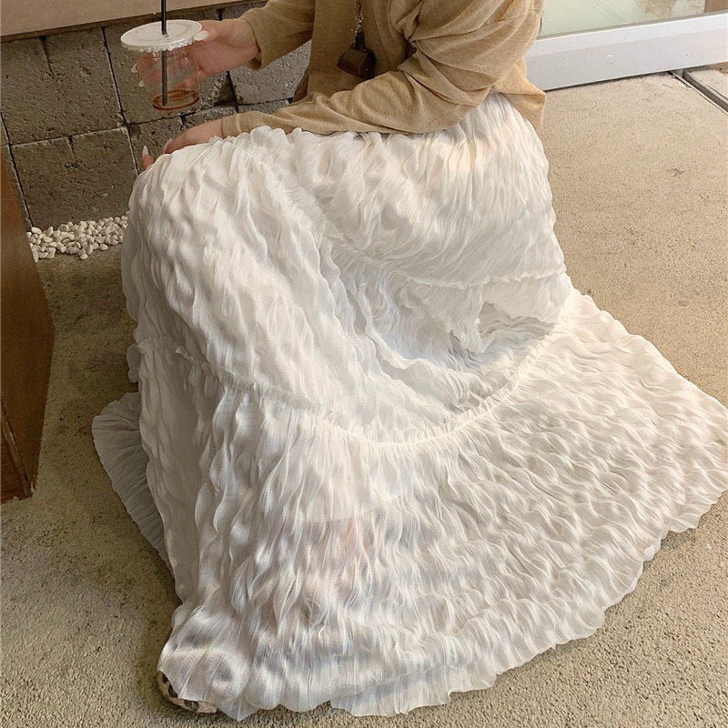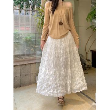 BY12593# 大码春季新款法式褶皱拼接A字半身裙气质百搭显廋中长裙 服裝批發女裝批發服飾貨源