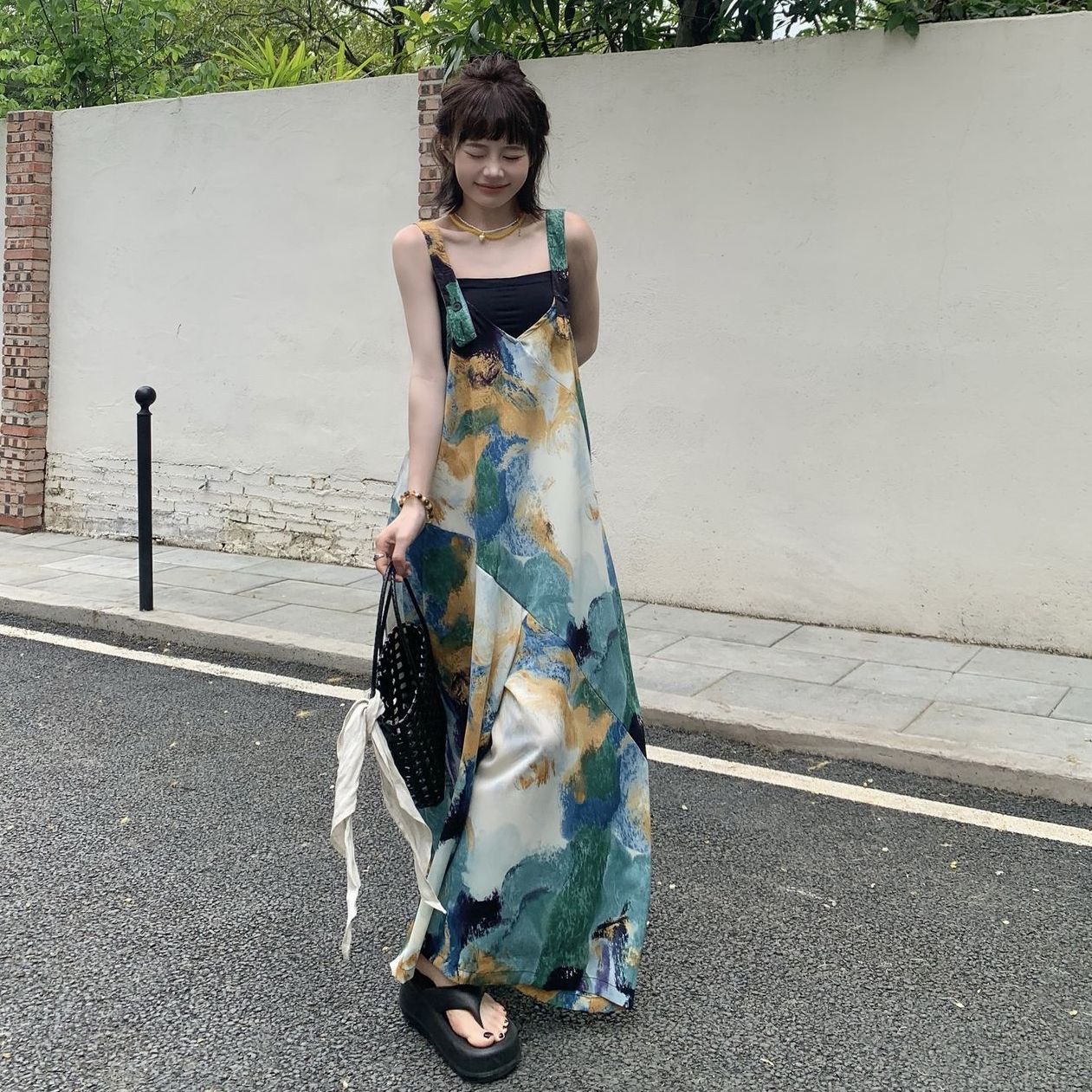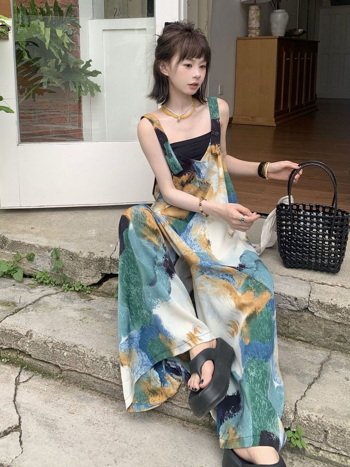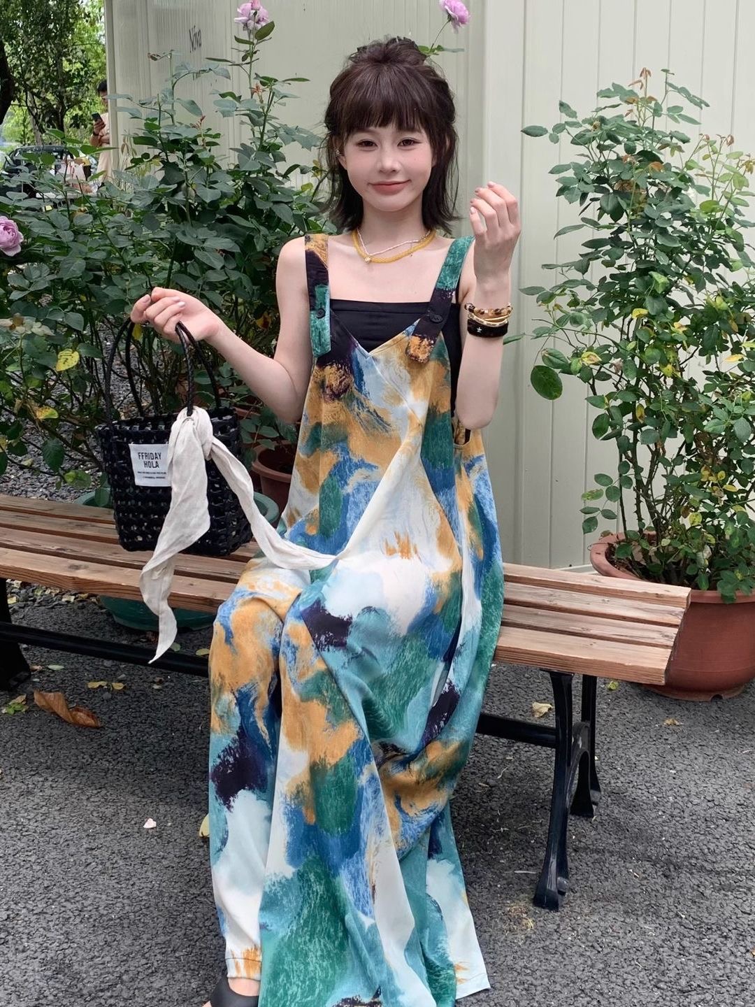 BY12627# 多巴胺宽松休闲波西米亚背带裤女夏季新款韩版吊带连体阔腿裤 服裝批發女裝批發服飾貨源