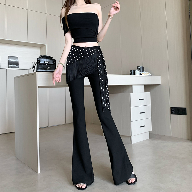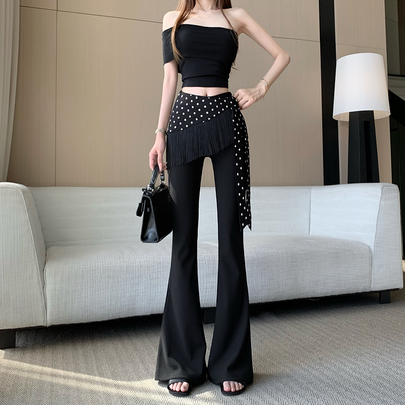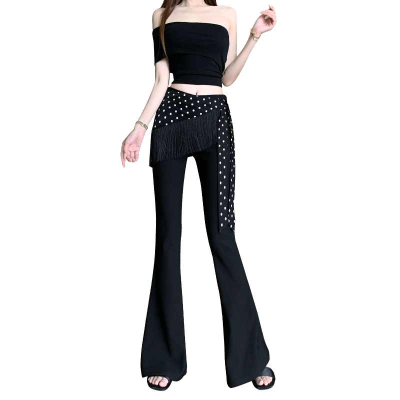 BY12632# 飘带屁帘西装微喇裤女设计感修身高腰弹力垂感显瘦直筒喇叭裤 服裝批發女裝批發服飾貨源