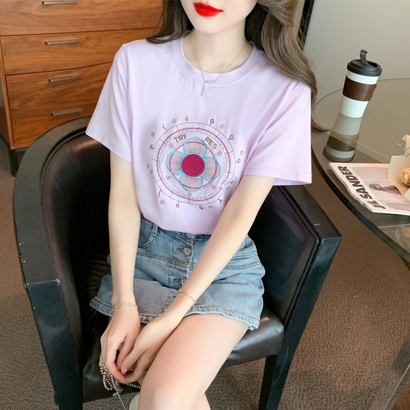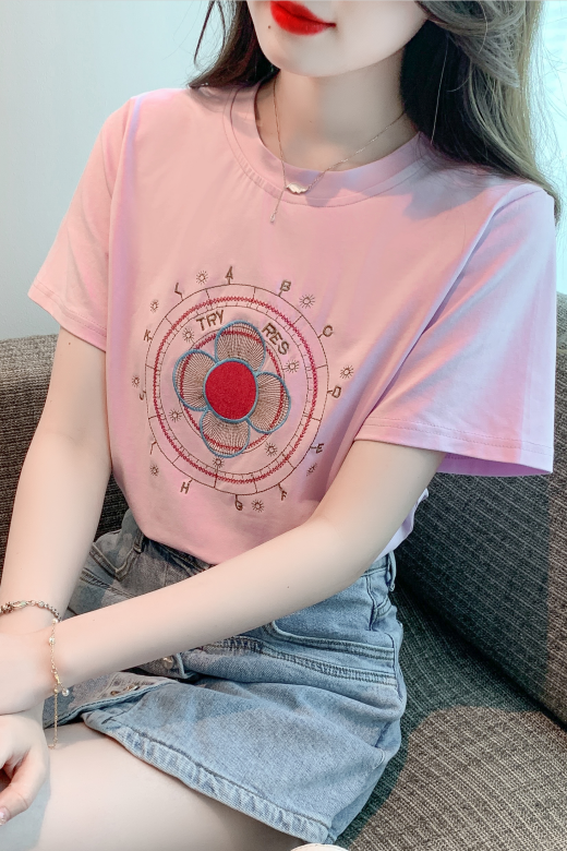 BY12678# 夏季新款刺绣纯棉套头T恤宽松显瘦短袖洋气上衣小衫女 服裝批發女裝批發服飾貨源