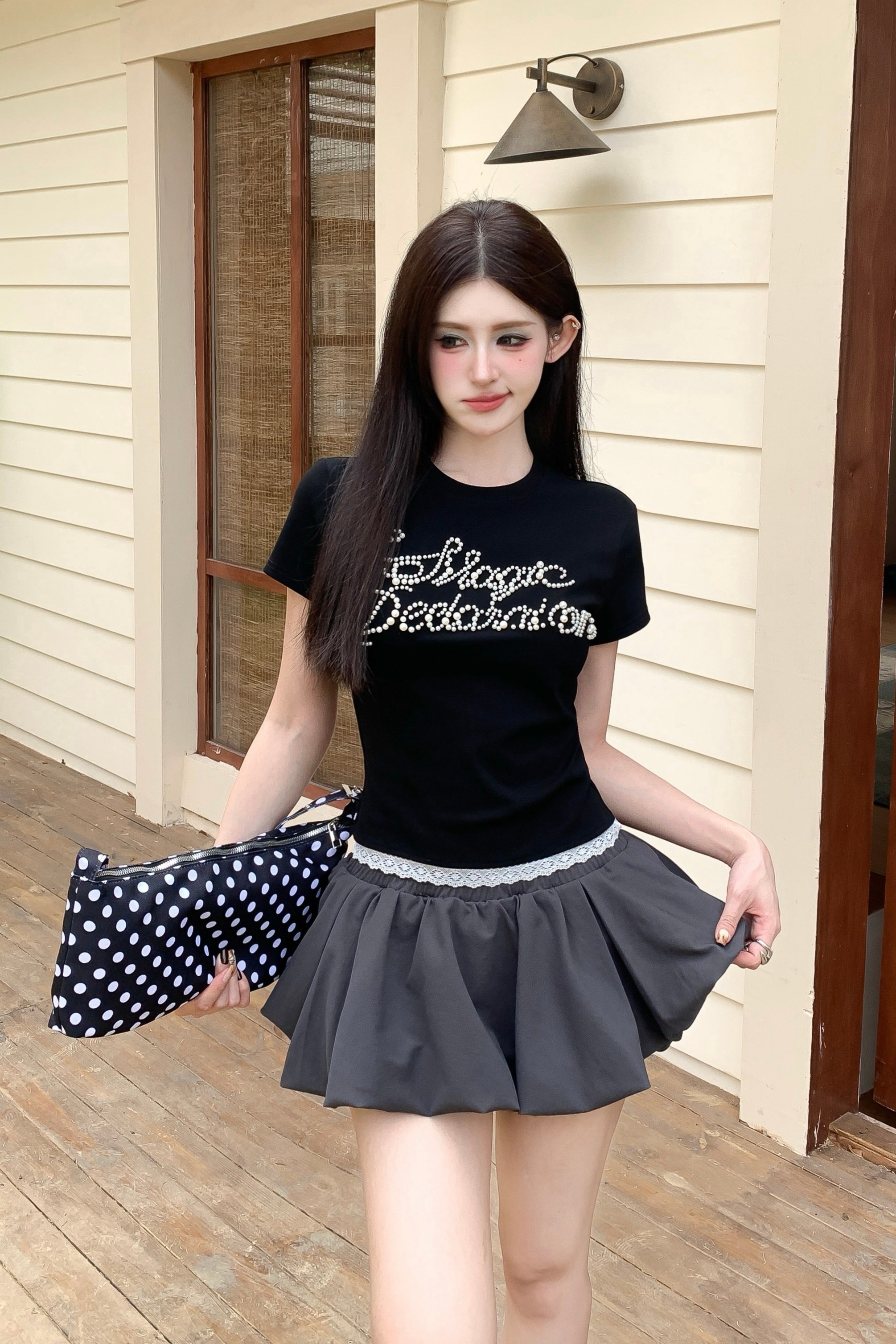 均码尺寸: 衣长50CM 胸围76CM有弹 肩宽35CM 袖长13.5CM