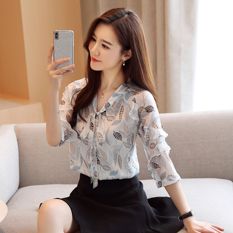 洋气雪纺衫衬衫女夏装新款短袖打底衫小衫韩版碎花露肩上衣 服裝批發女裝批發服飾貨源