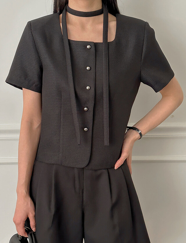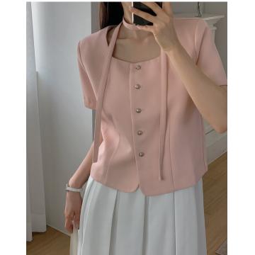 韩国chic法式圆领飘带单排扣粗纺小香风外套上衣 服裝批發女裝批發服飾貨源