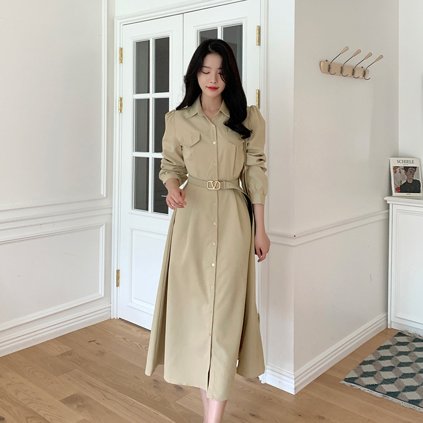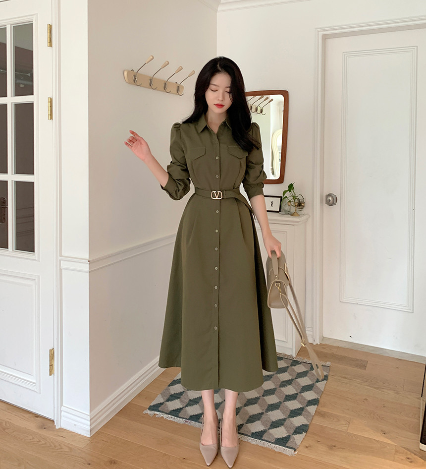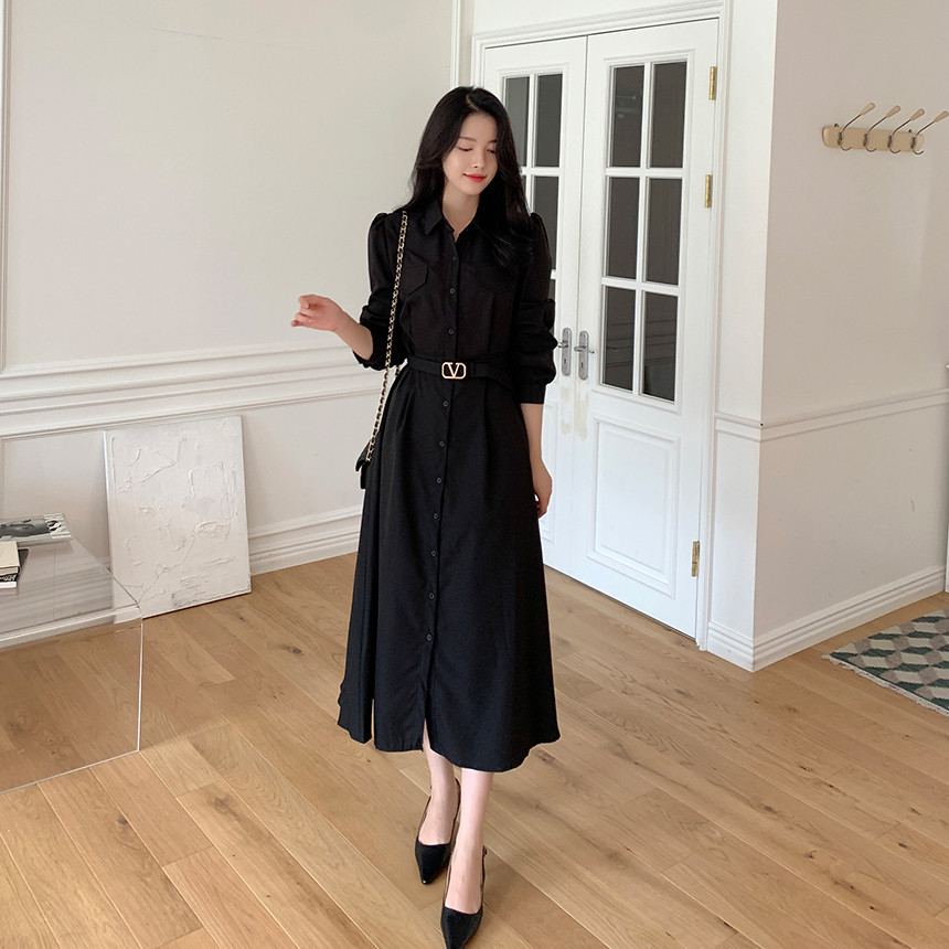 韩国chic秋冬法式气质系带收腰连衣裙女 服裝批發女裝批發服飾貨源