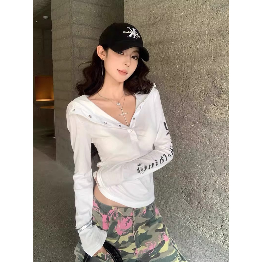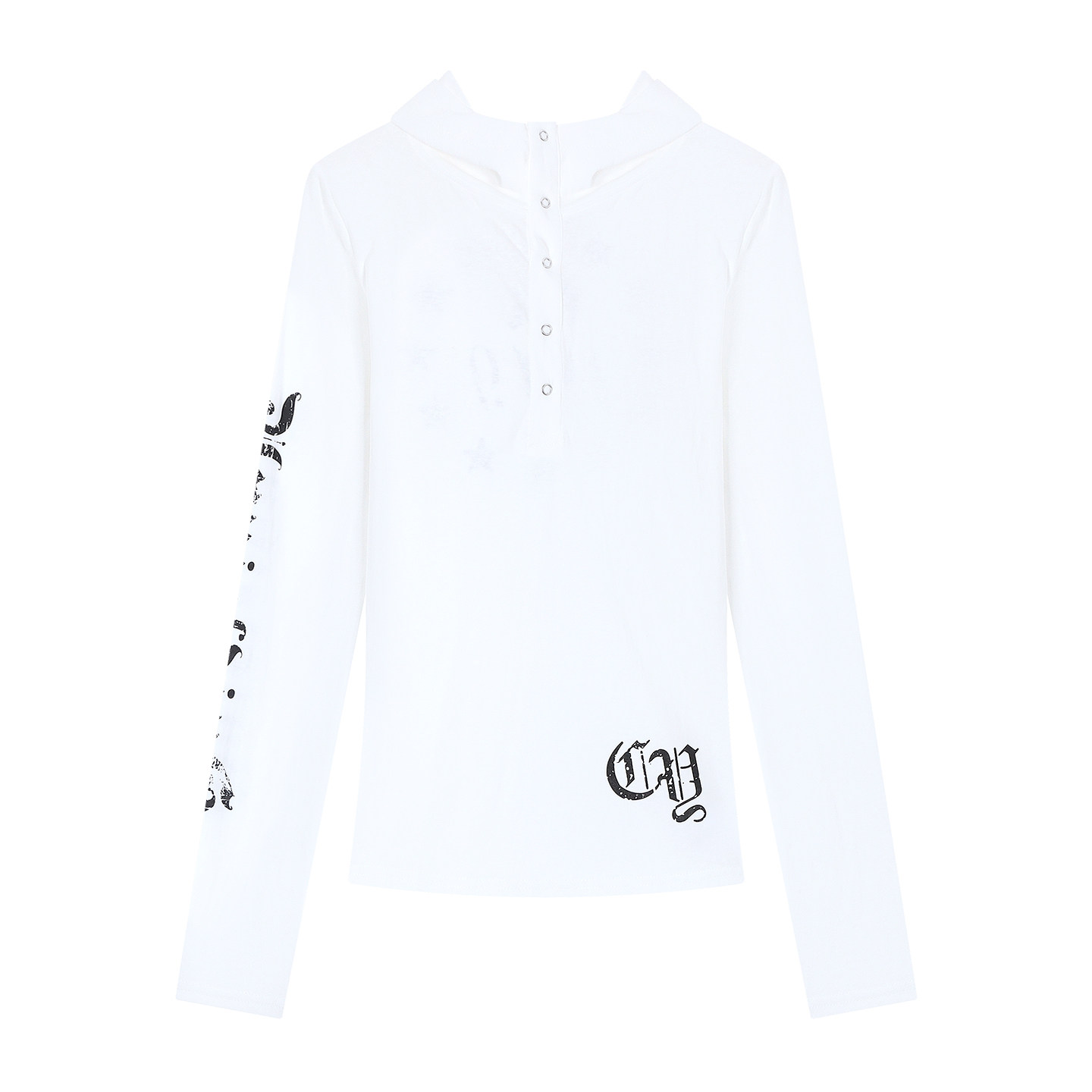 +原版质量设计感星星印花连帽长袖T恤防晒上衣 服裝批發女裝批發服飾貨源