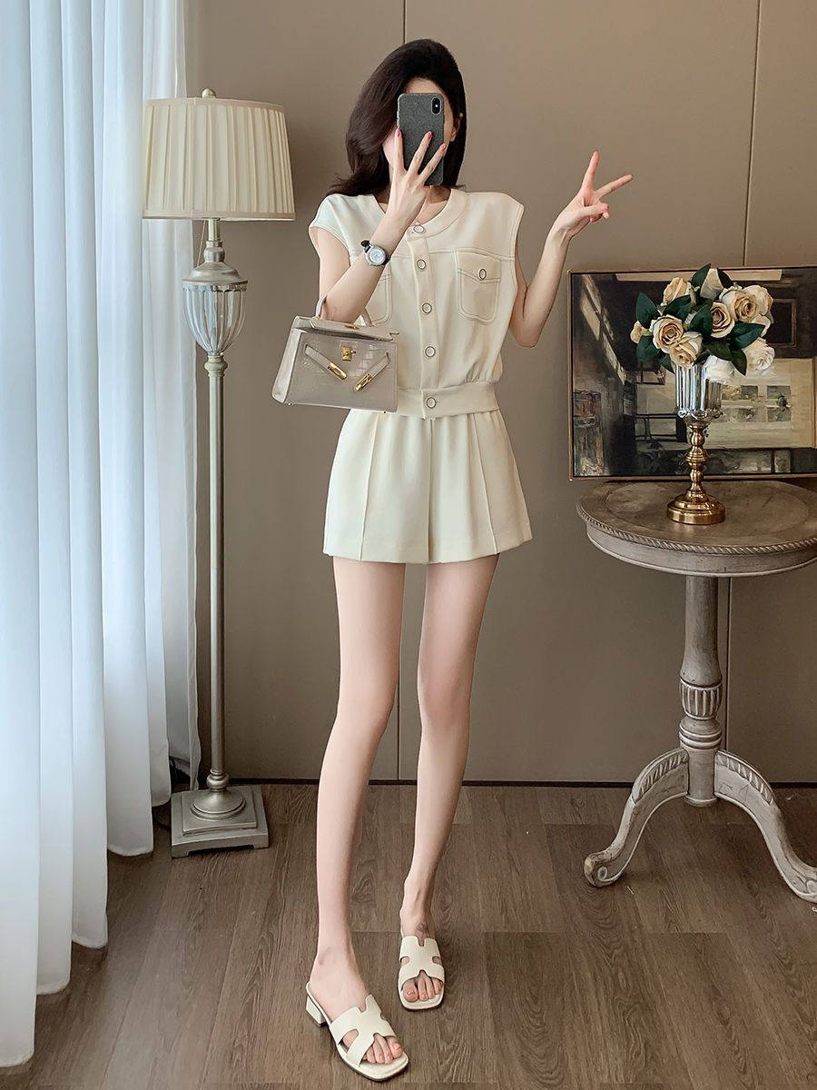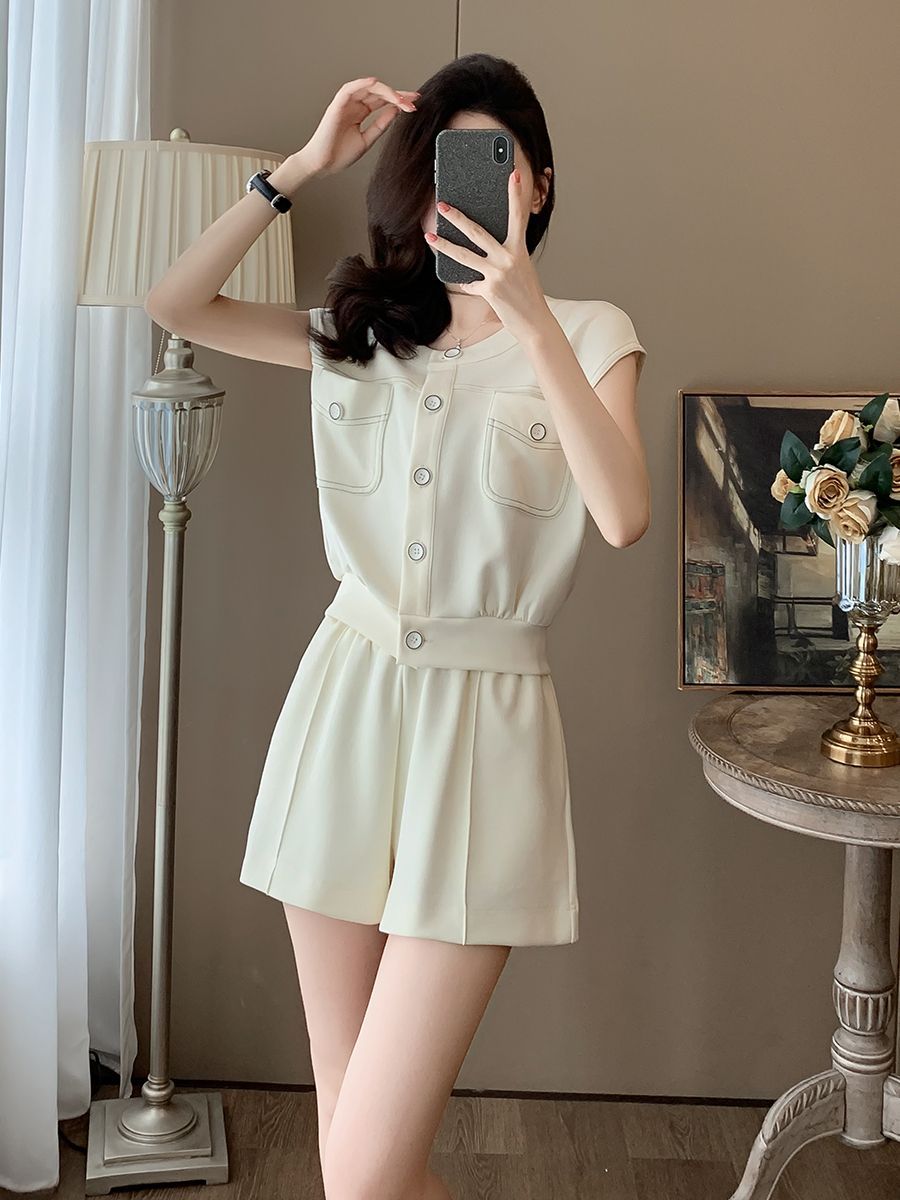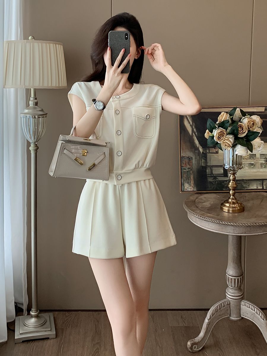 韩系学院风今年流行休闲套装女夏新款高级松弛感小个子短裤两件套 服裝批發女裝批發服飾貨源