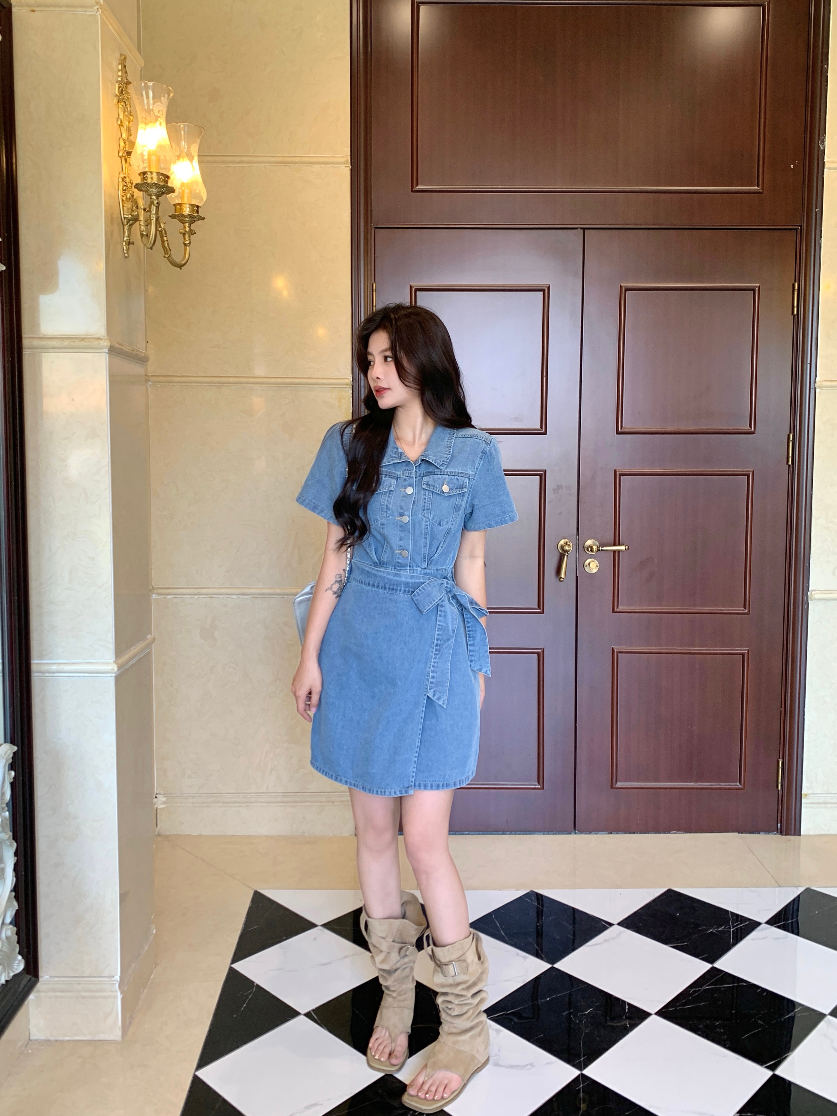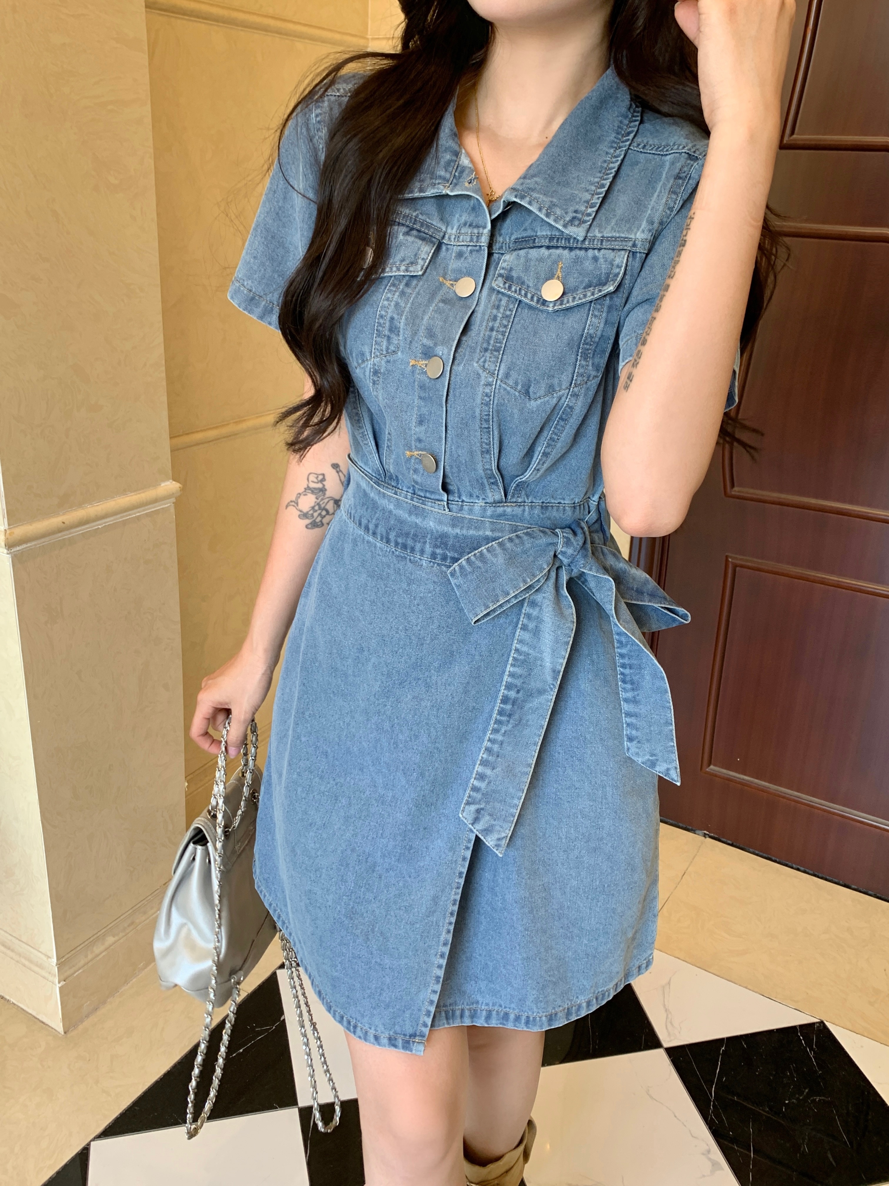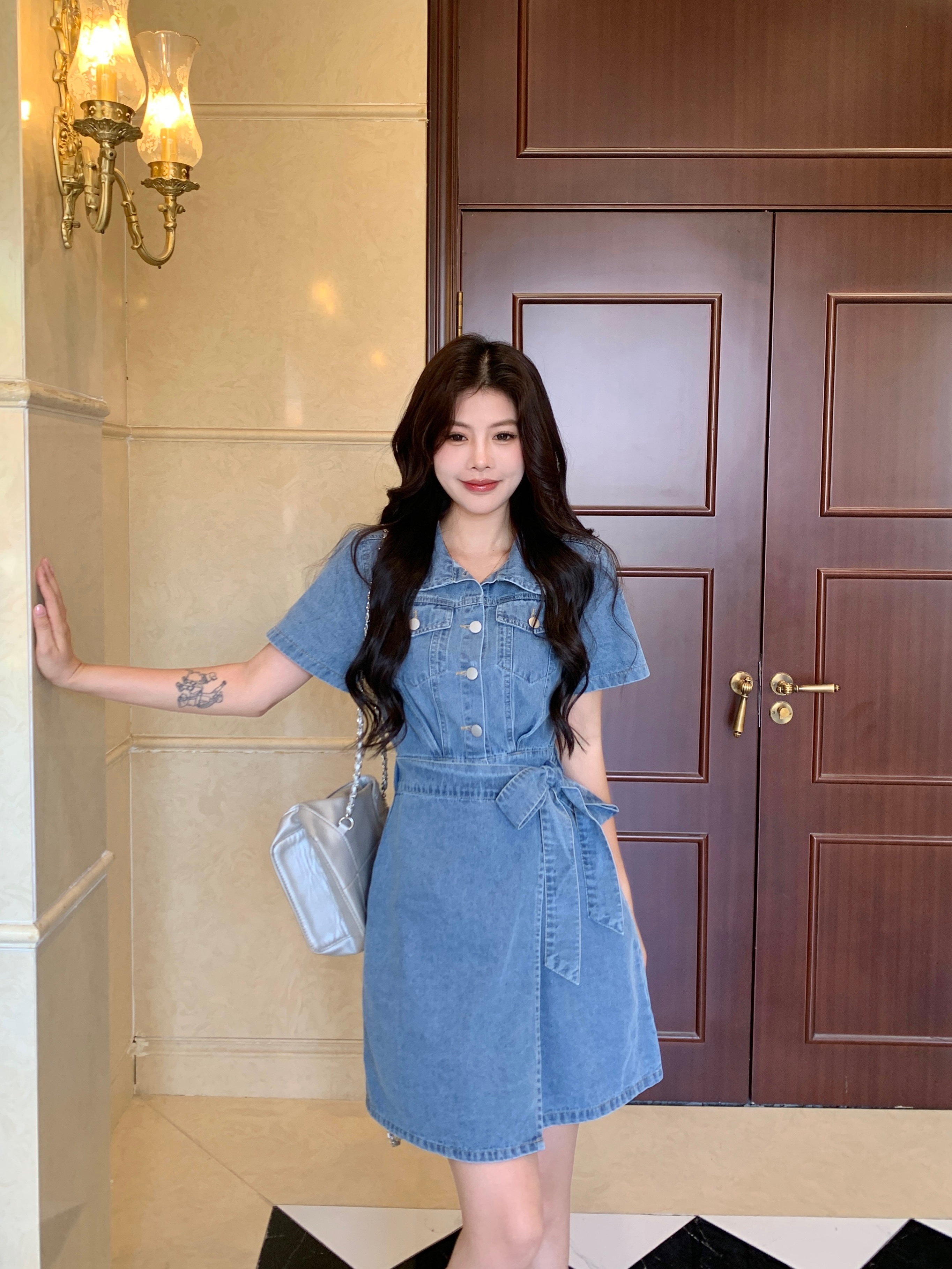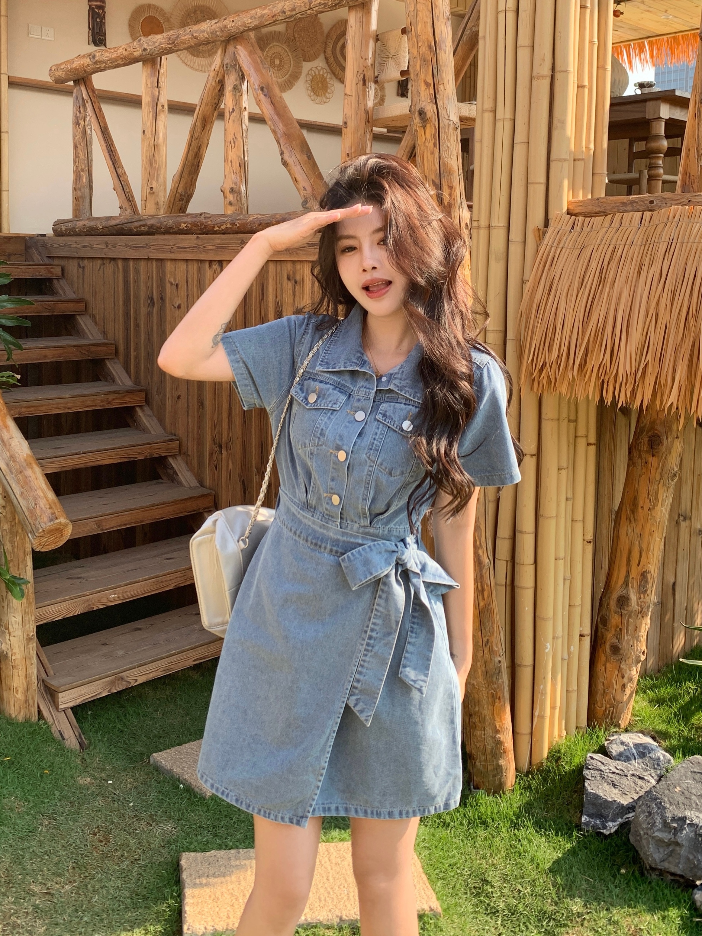 ~大码女装系带牛仔裙收腰显瘦甜酷减龄藏肉百搭 服裝批發女裝批發服飾貨源