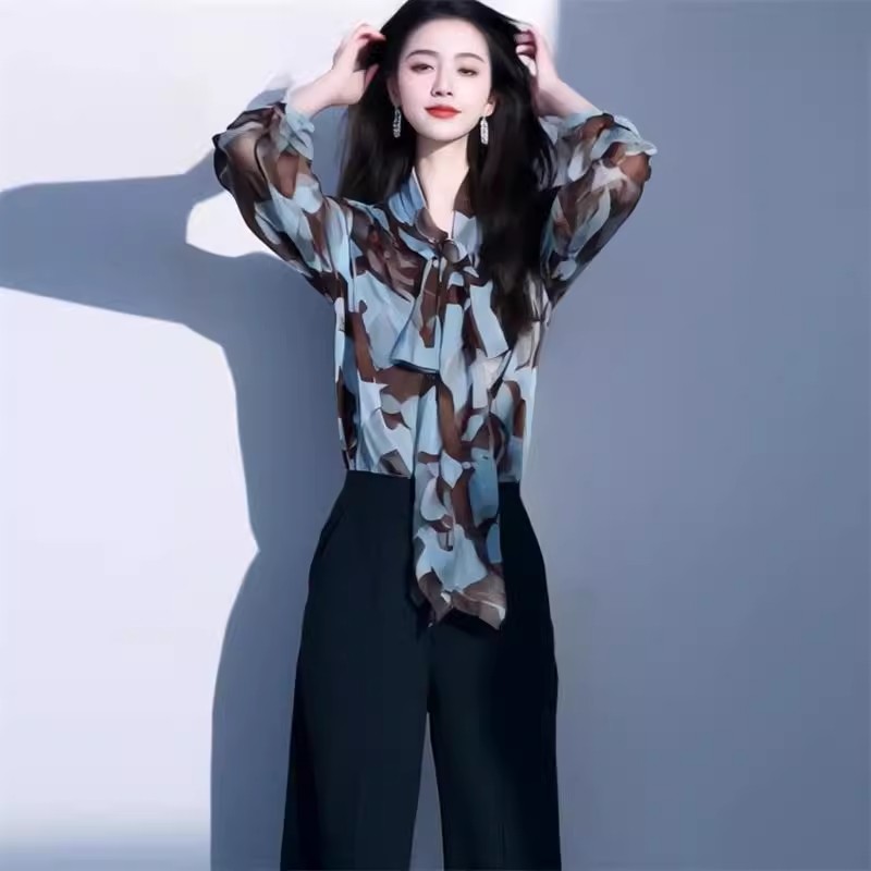 BY12773# 设计感系带别致薄款长袖衬衫夏季时尚花色防晒衫衬衣气质显瘦上衣 服裝批發女裝批發服飾貨源