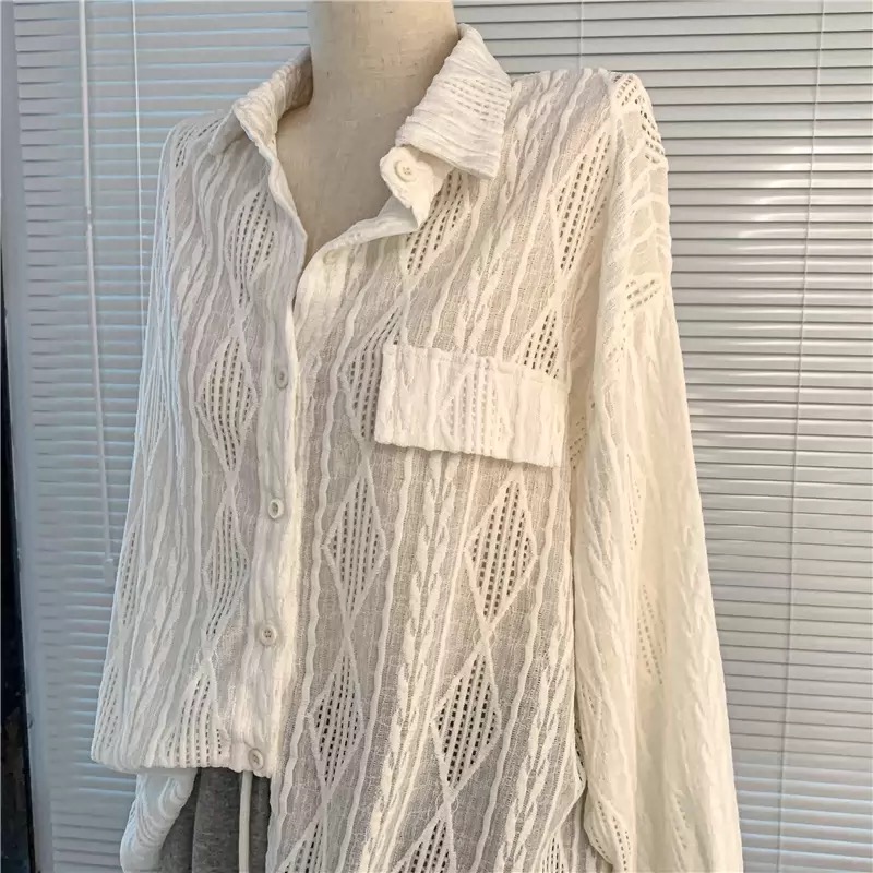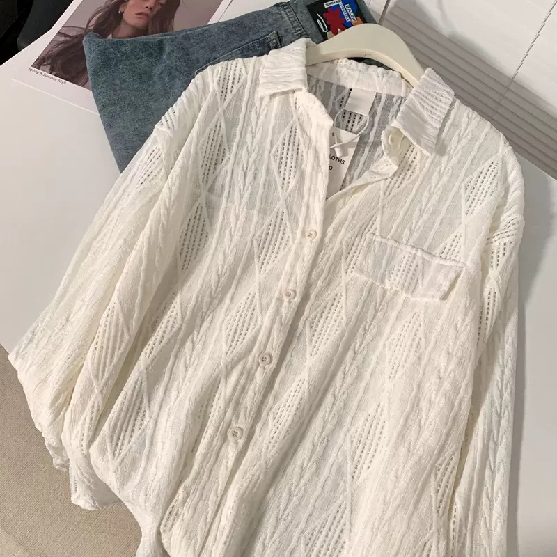 BY14031# 法式白色镂空防晒衬衫外套女夏季薄款上衣外搭开衫高级感休闲衬衣 服裝批發女裝批發服飾貨源