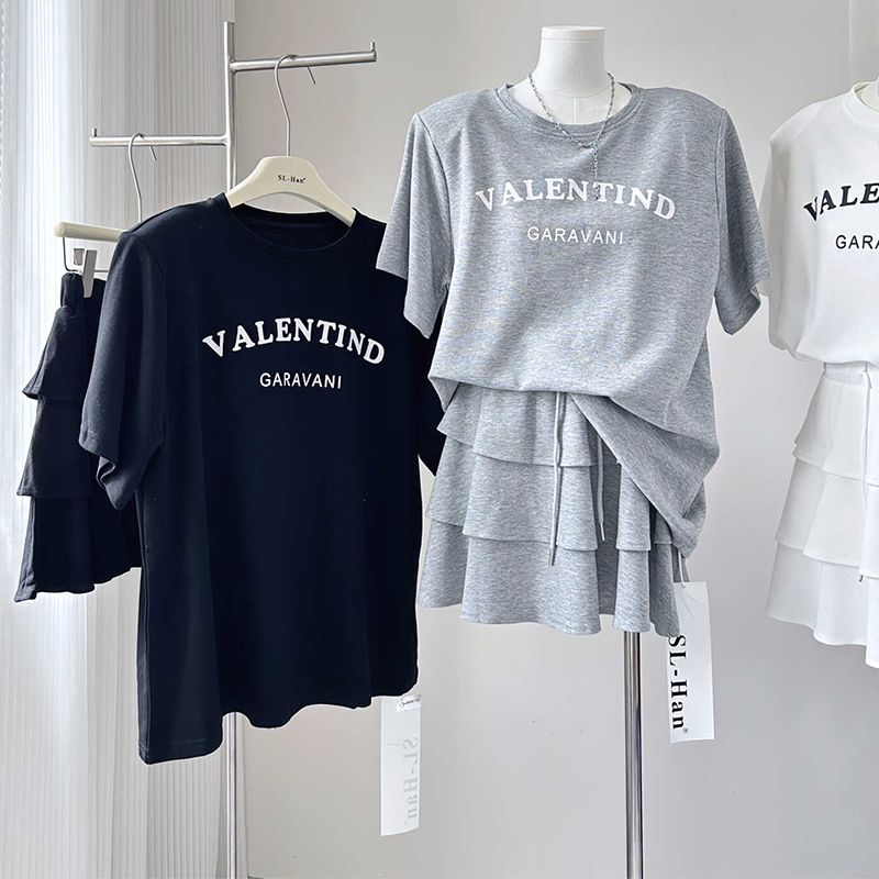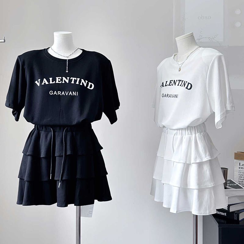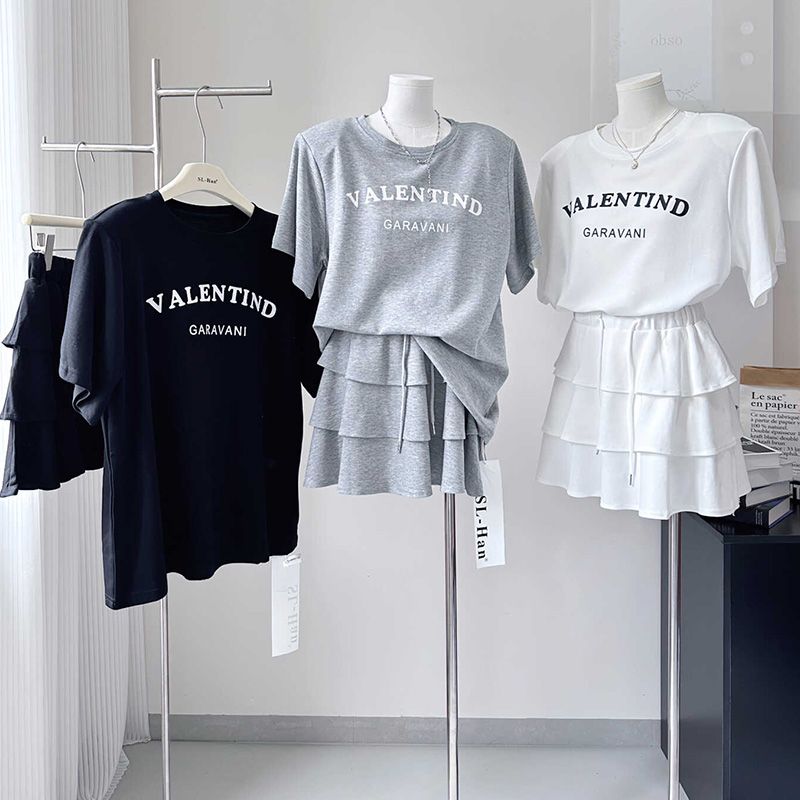 BY14657# 超火夏装一整套穿搭女新款慵懒风宽松t恤+半身裙减龄两件套 服裝批發女裝批發服飾貨源