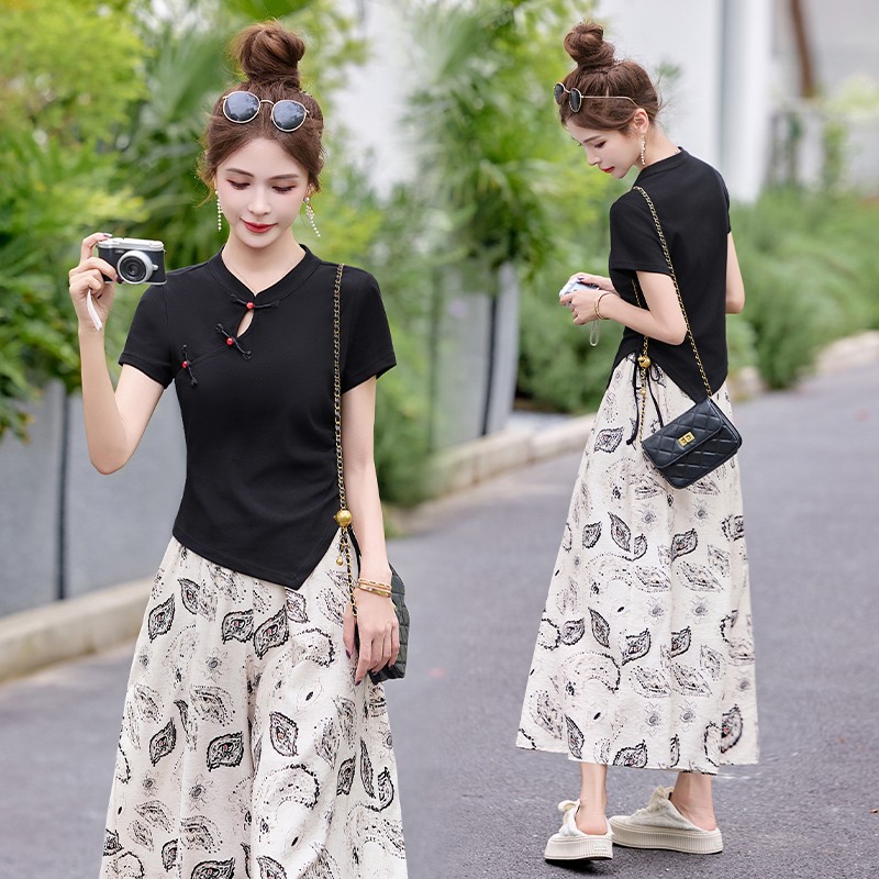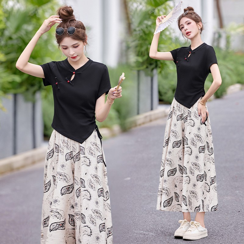 BY14663# 小个子新中式国风套装夏季新款女装洋气减龄高级感裙裤两件套 服裝批發女裝批發服飾貨源
