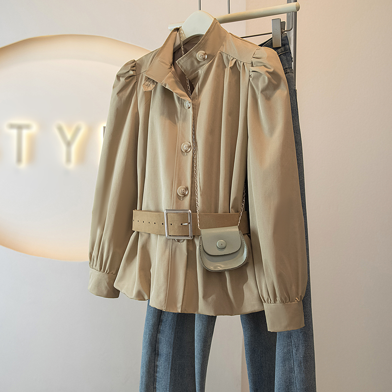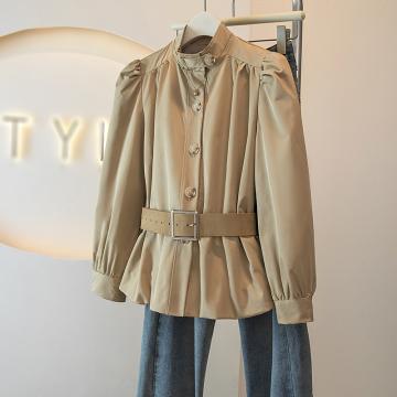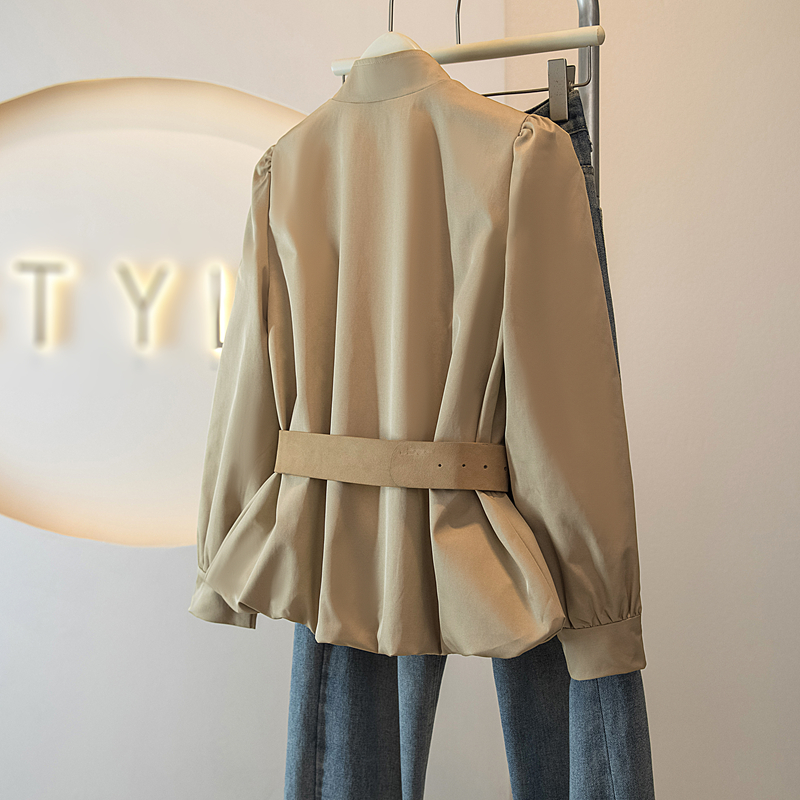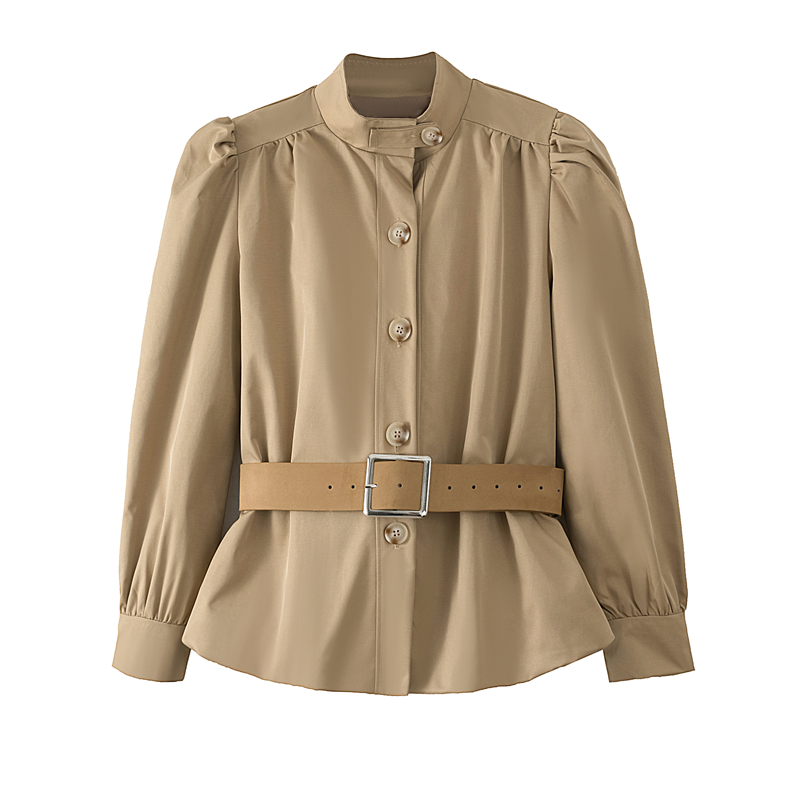 BY14725# 春季新款独特别致卡其色收腰外套气质高级感时髦百搭上衣 服裝批發女裝批發服飾貨源
