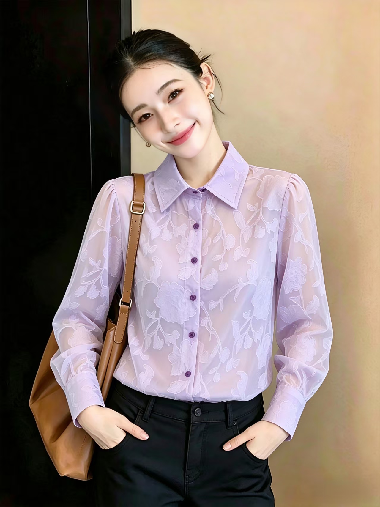 长袖雪纺衫、衬衫、上衣