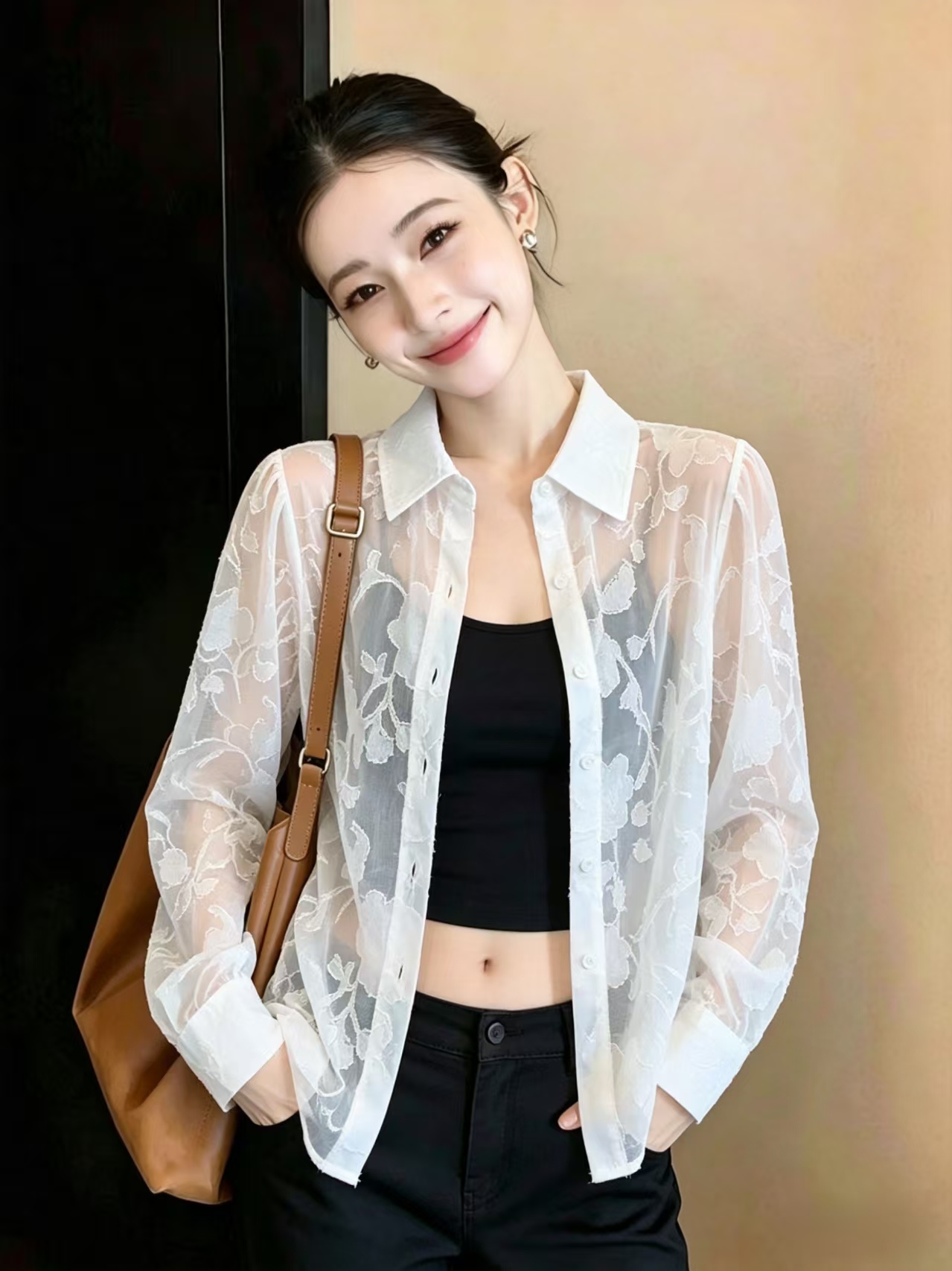BY15263# 夏新款时尚百搭显瘦宽松长袖防晒衣上衣服裝批發女裝批發服飾貨源