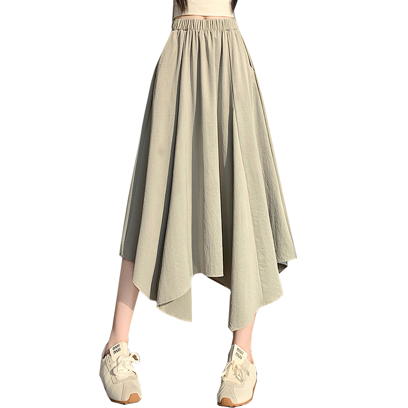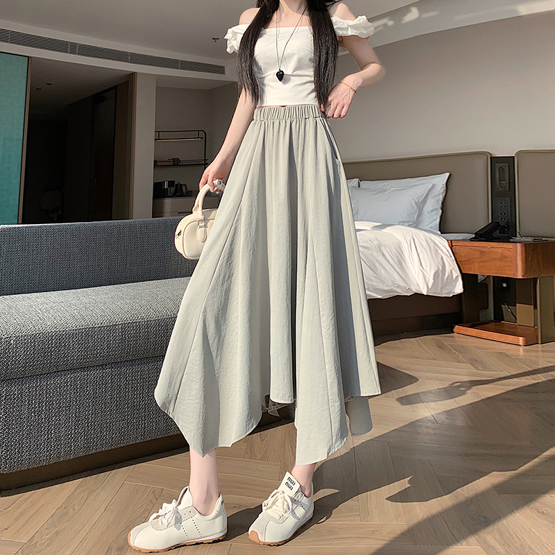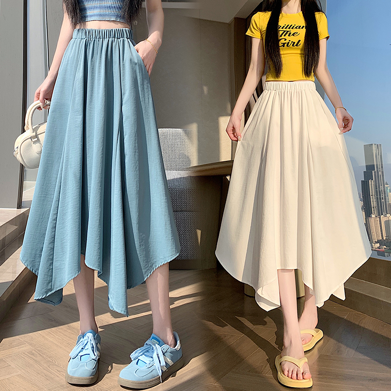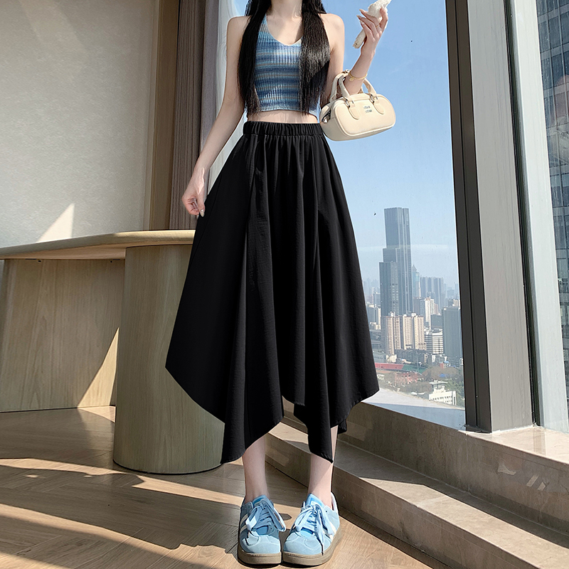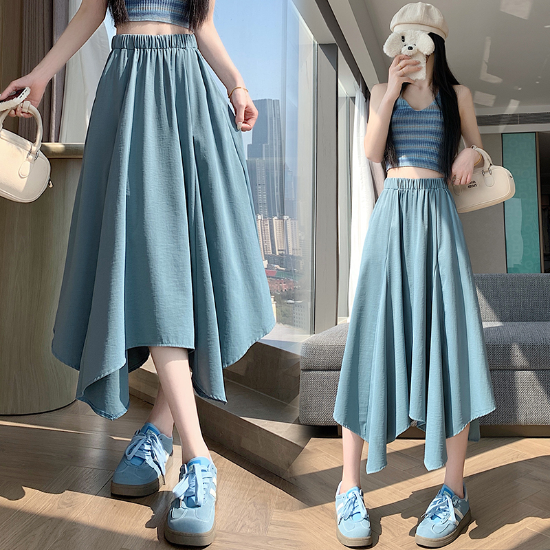 BY16310# 春夏新款高腰时尚不规则大摆长裙松紧腰A字半身裙 服裝批發女裝批發服飾貨源