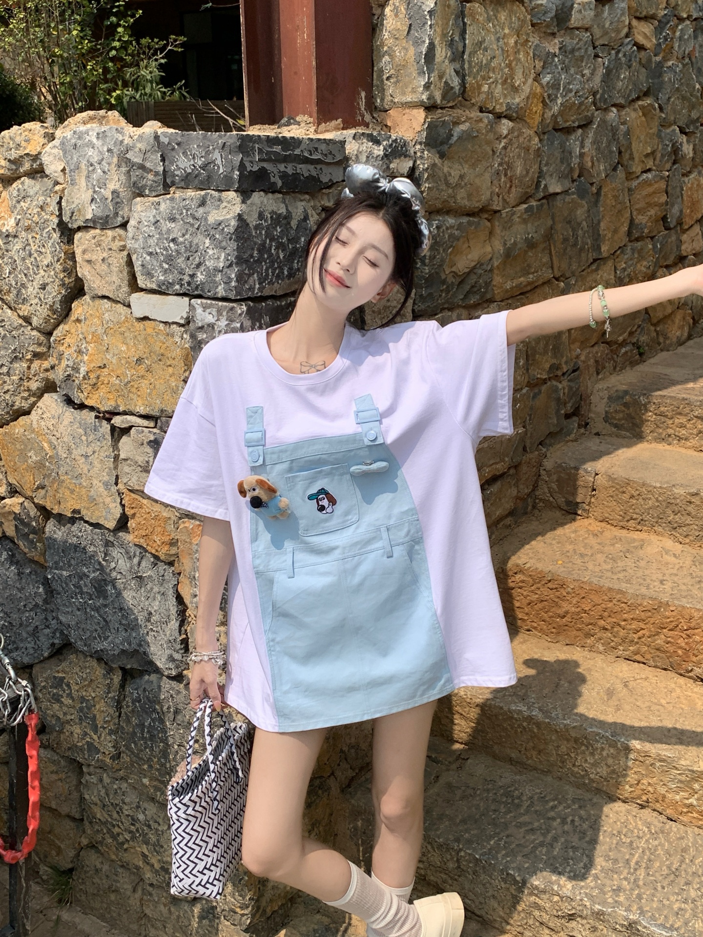 Hot : 大码 韩版 连衣裙 雪纺 衬衫 胖MM 牛仔 背带裤 假两件